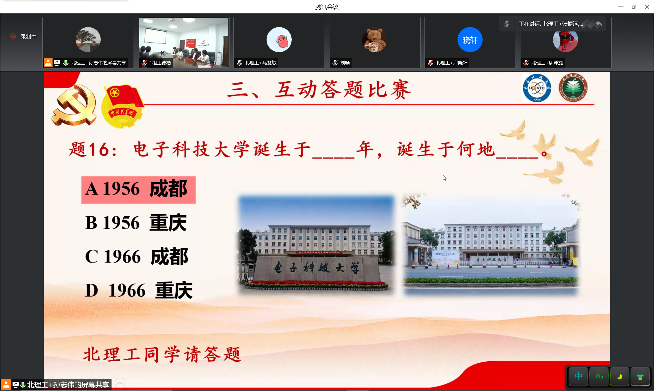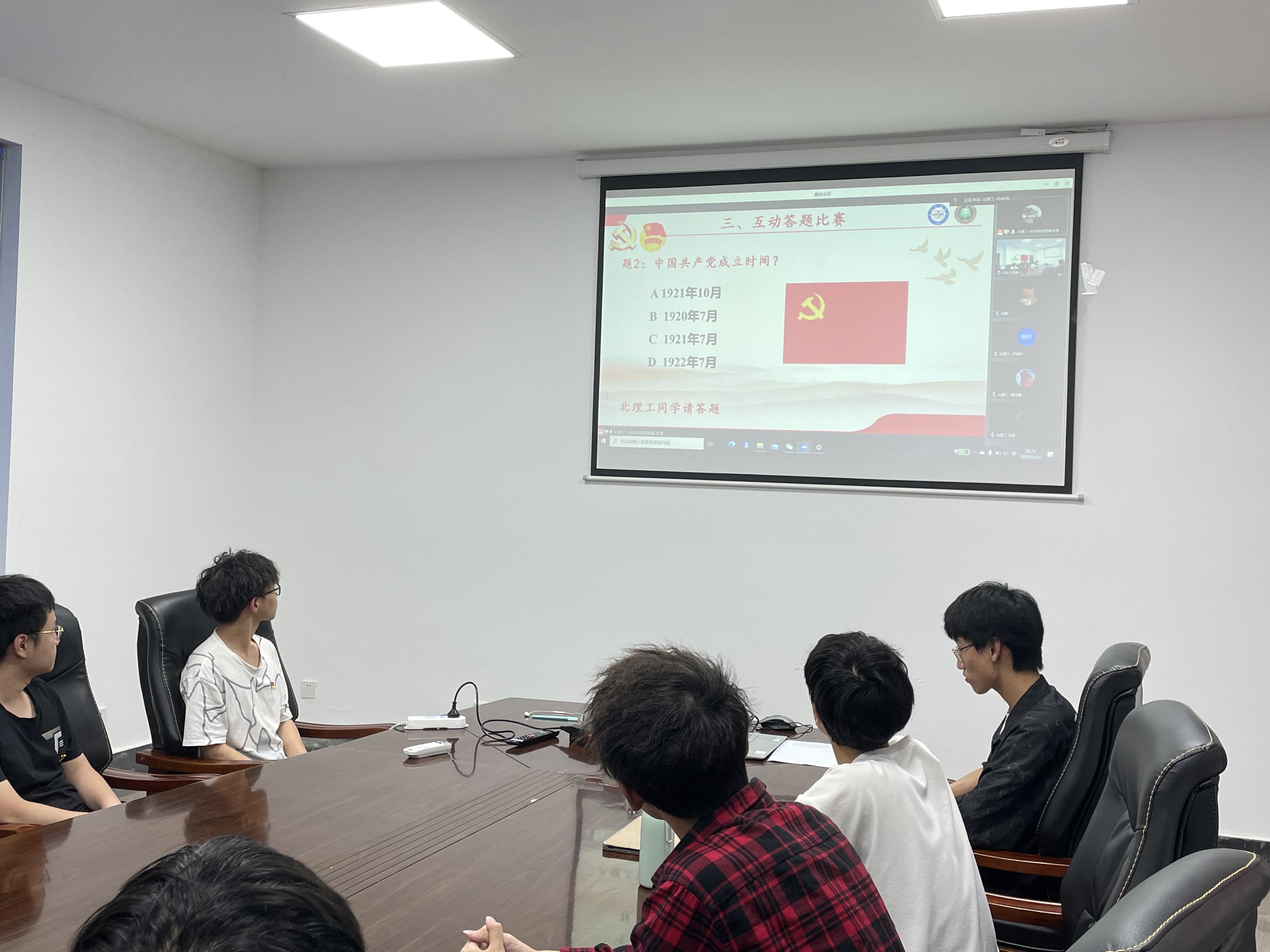 随后,双方围绕党、团基本知识和防疫常识进行线上答题比赛,在竞答中回顾光辉历史、强化理论知识,也以云端互动的方式拉近彼此距离、增进双方感情。