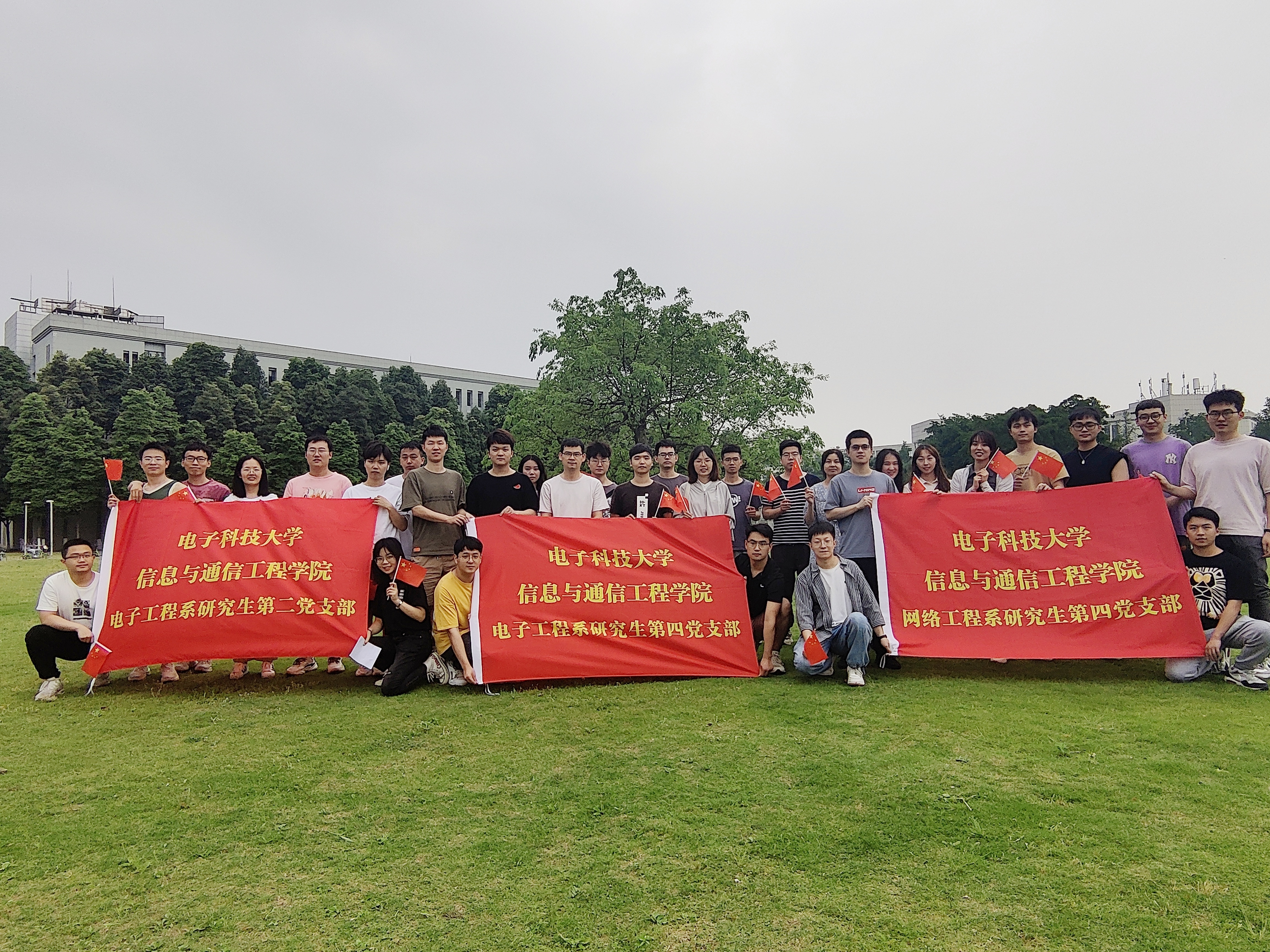 为了迎接党的二十大胜利召开,积极营造喜迎党的二十大的浓厚氛围,激励支部成员自觉从党的重大成就和历史经验中汲取丰富智慧和奋进力量,2022年5月8日15时,太阳成集团tyc151cc电子工程系研究生第二、四党支部联合网络工程系研究生第四党支部共同在图书馆前开展了以“青春献礼二十大,强国有我新征程”为主题的党日活动。此次活动还特别邀请到了党员教师郭世盛老师参与,活动由三位支部书记——孔昱凯同志、李文欣同志、薛擎宇同志共同主持。