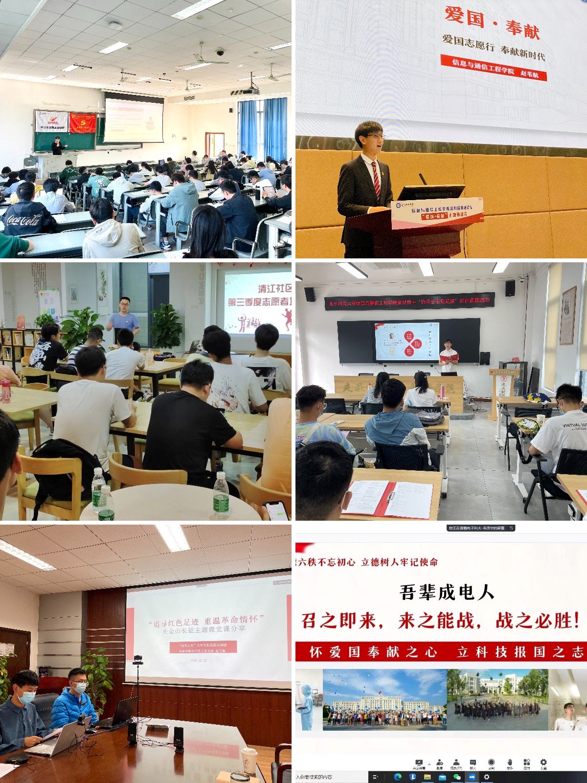 支部成员加入“信仰之光”老员工新思想宣讲团,宣讲团由太阳成集团tyc151cc“5月的向日葵”辅导员工作室组织管理。支部宣讲员围绕成电建校史、公司发展史、中国共产党人的精神谱系和时政热点解读四个方向,认真学习、精心备课,用青年学子乐于接受的话语体系传播和弘扬红色精神。