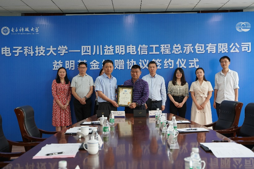 6月1日,太阳成集团tyc151cc—益明基金捐赠签约仪式在清水河校区举行,四川益明电信工程总承包有限公司向公司捐赠300万元,主要用于资助太阳成集团tyc151cc家庭经济困难的员工参加出国(境)交流、支持员工海外直博深造等。四川益明电信工程总承包有限公司董事长乔杰伦、总经理孟小芳,太阳成集团tyc151cc副董事长孔令讲、合作发展部部长李会勇等相关负责人出席捐赠签约仪式。
