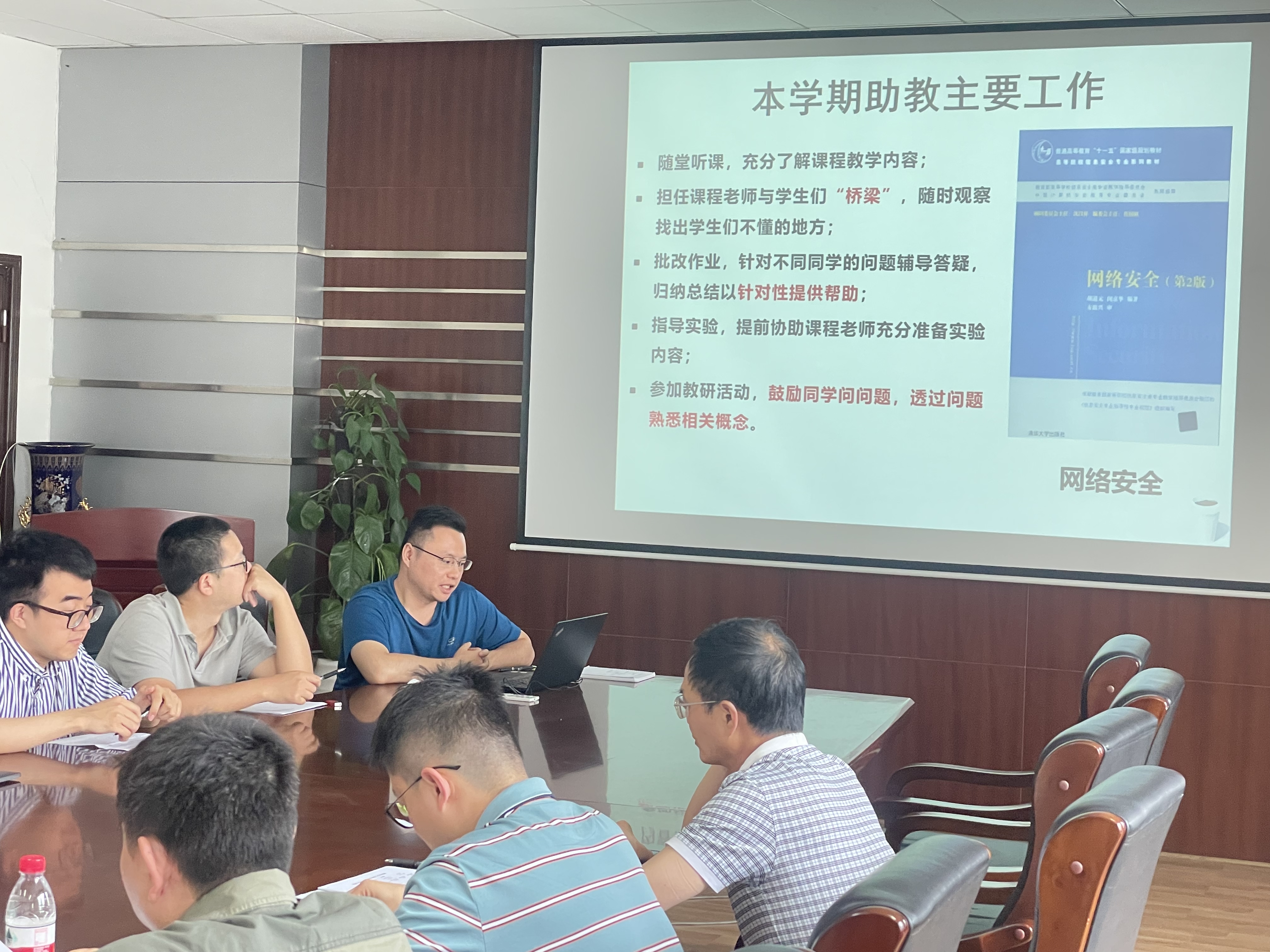 首先,刘亮、胡航宇、刘雨莎、孙稚超等十余位青年教师汇报了本学期助教工作的基本情况,分享了教学工作中的收获和感想,林水生等3位老师对青年教师的助教工作进行了考核,重点关注助教工作职责履行情况、教改教研活动参与情况、教学基本功提升情况。