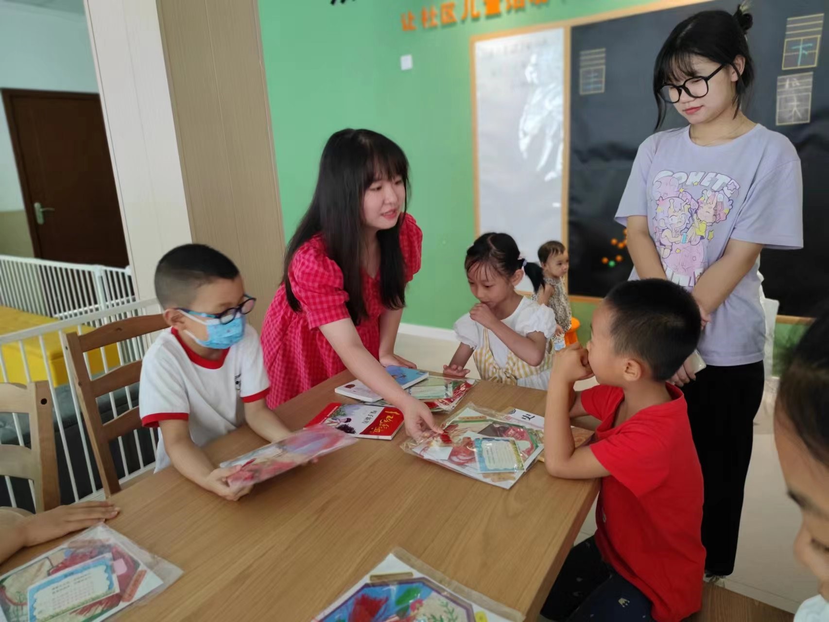 在实践过程中,朝霞行动公益实践队的队员们走进新都社区,以《那年那兔那些事儿》为切入点开展党史讲解活动,让孩子们将爱党爱国的思想从小扎根心底;同时根据孩子们的年龄,用听歌识曲等趣味横生的活动拉近与孩子们的距离,让红色歌曲在孩子们心中永流传;最后通过动手动脑的手工制作让孩子们在七一建党节亲手表达了童心向党的爱党热情。