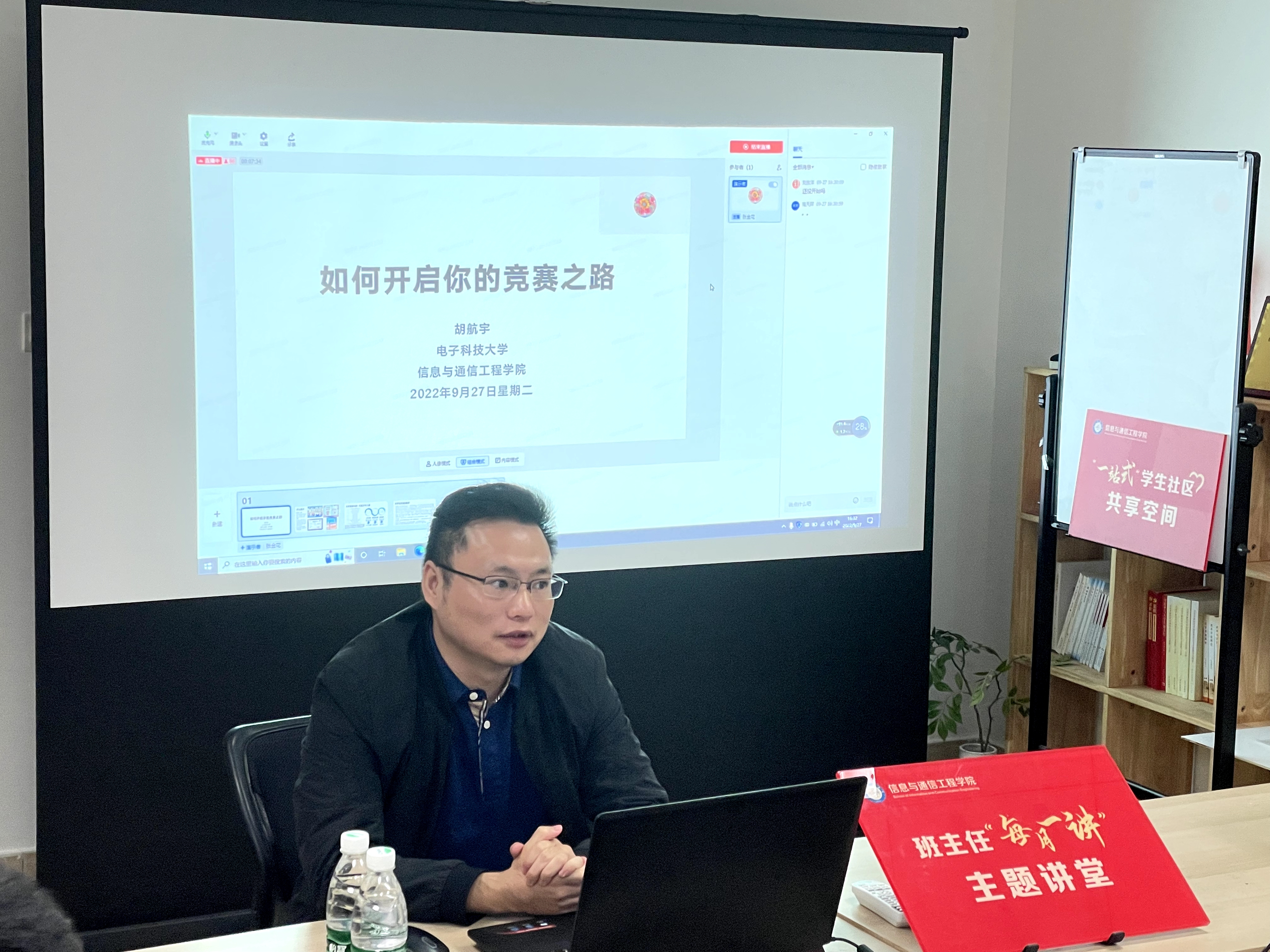 9月27日下午,太阳成集团tyc151cc在“一站式”员工社区开展班主任“每月一讲”主题讲堂第五期活动。本期活动邀请了公司班主任胡航宇老师以“如何开启你的竞赛之路”为题,与同学们开展交流分享。胡老师主要就大学有哪些竞赛、老员工竞赛的目的以及如何参与学科竞赛这三个方面提供了具体指导与建议。