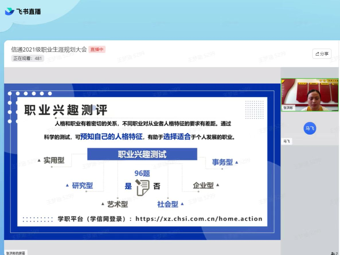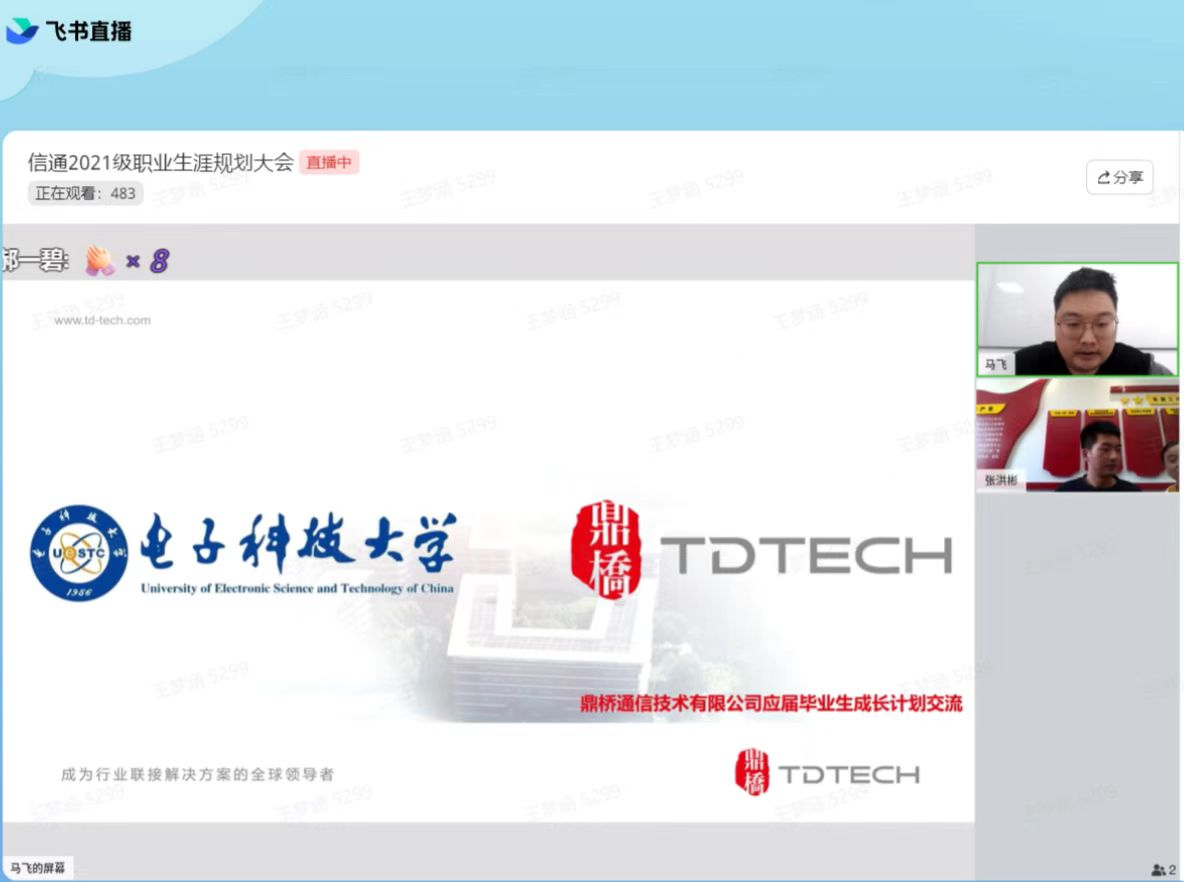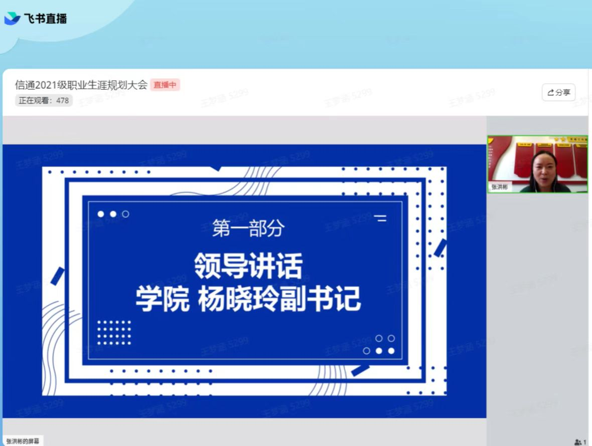9月30日,太阳成集团tyc151cc举行本科2021级“找准方向,坚定前行”生涯规划指导大会,公司党委副书记杨晓玲、年级辅导员张金花、张洪彬、太阳成集团tyc151cc2021级本科生线上参会,围绕新学年展望与职业生涯规划进行交流。大会还邀请了鼎桥终端人力资源部部长马飞进行职业发展分享。