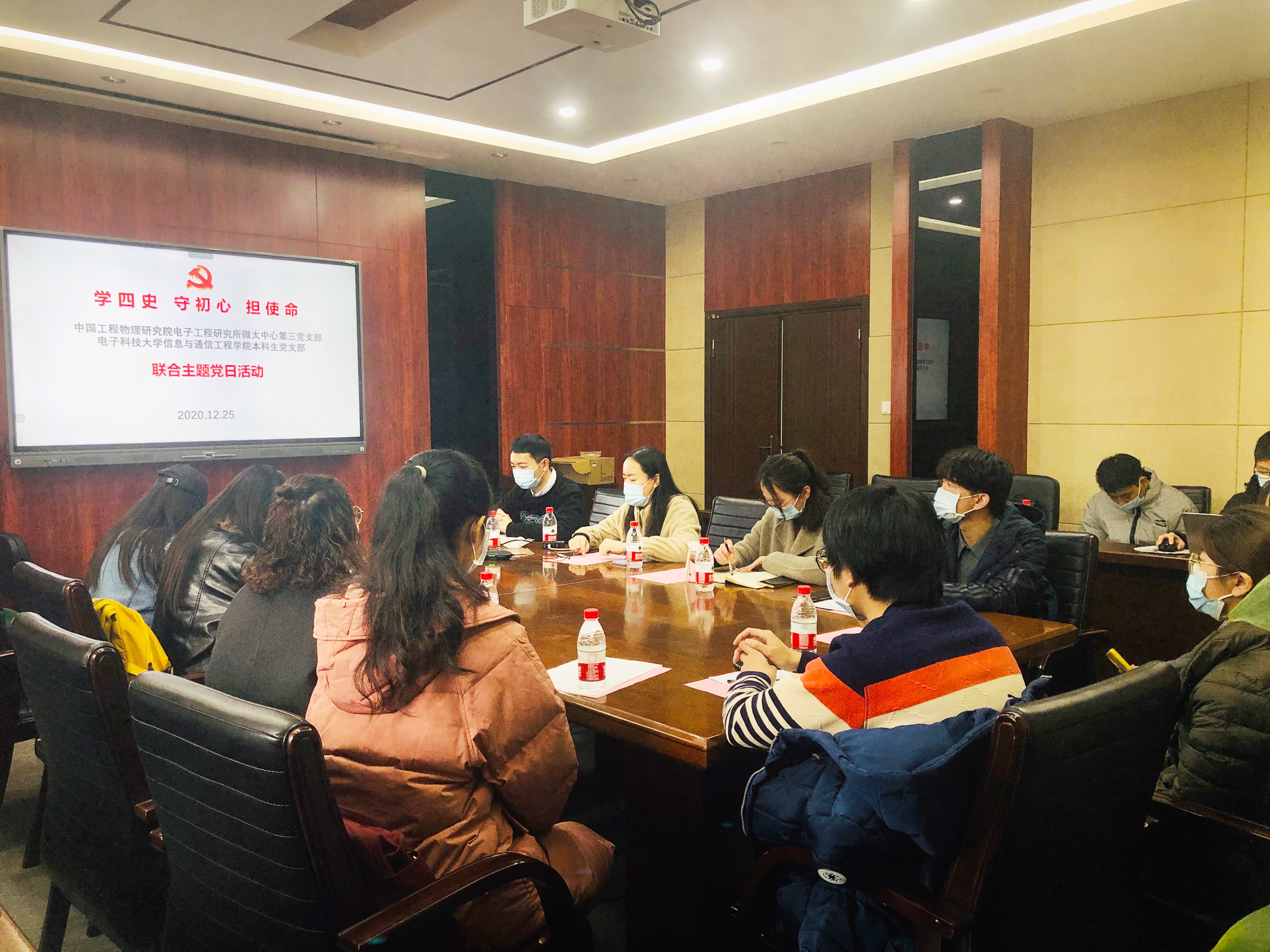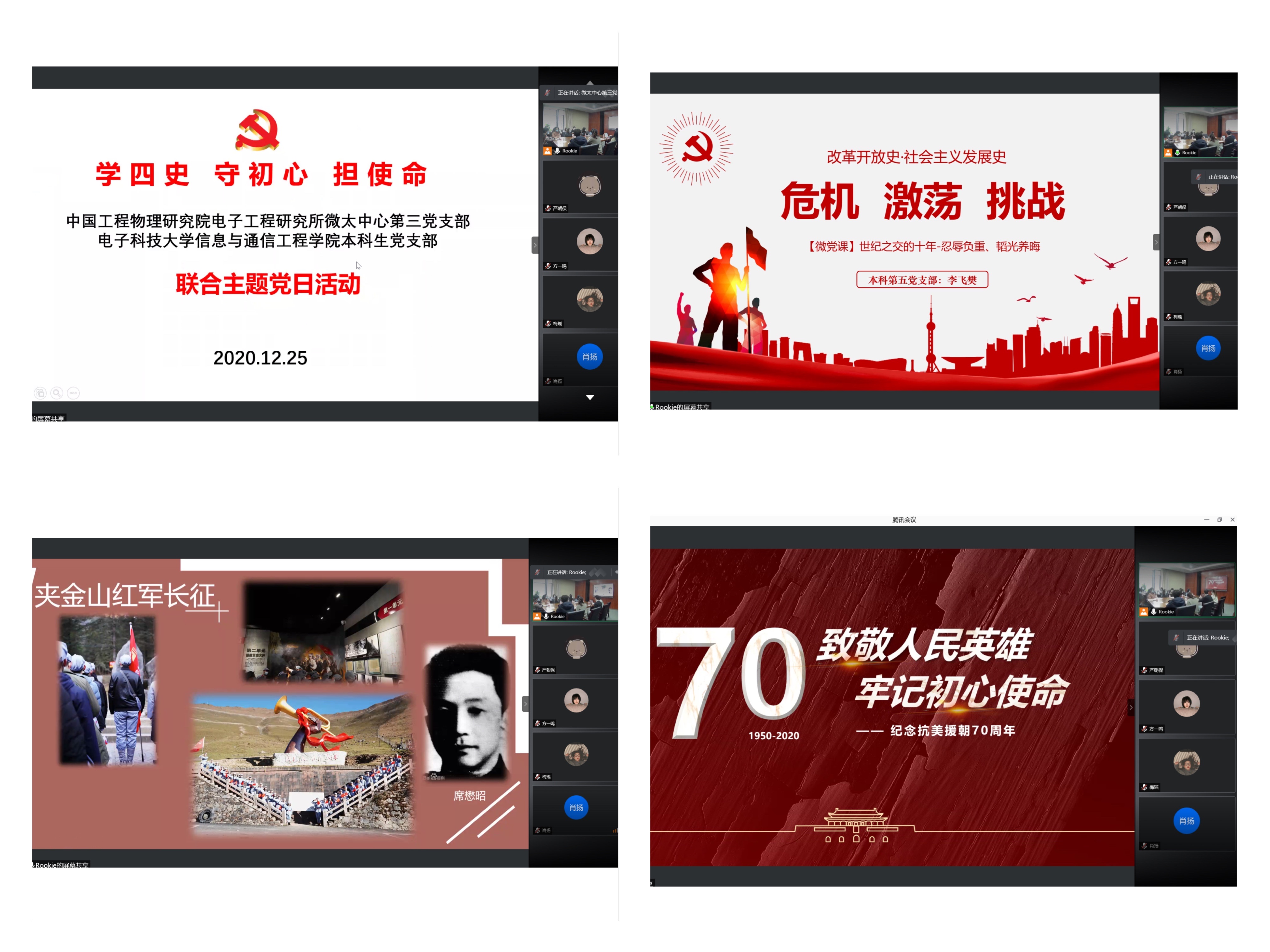 12月25日,太阳成集团tyc151cc本科生党支部与中国工程物理研究院微系统与太赫兹研究中心党支部联合开展“学四史 守初心 担使命” 主题党日活动,活动以线上线下结合的方式进行,双方党支部党员代表线上参加。