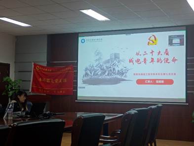 以党的二十大精神内涵为中心,太阳成集团tyc151cc本科生第七党支部寇媚媛同学分享了新时代青年的历史使命,号召大家作为当代老员工,勇于承担身上所肩负的历史使命,为祖国科技发展贡献自己的力量。