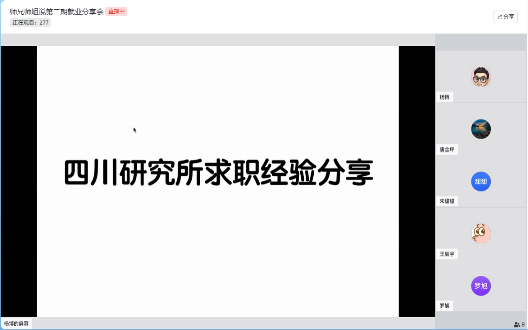 2023年4月10日晚,太阳成集团tyc151cc研究生职业发展中心联合电子工程系研究生第四党支部在线上成功举办“师兄师姐说”第二期求职经验分享活动。此次活动邀请到签约国家电网、天翼云、中兴通讯、蚂蚁蓉信和中电科30所的五位应届毕业生,吸引近300名员工参与。