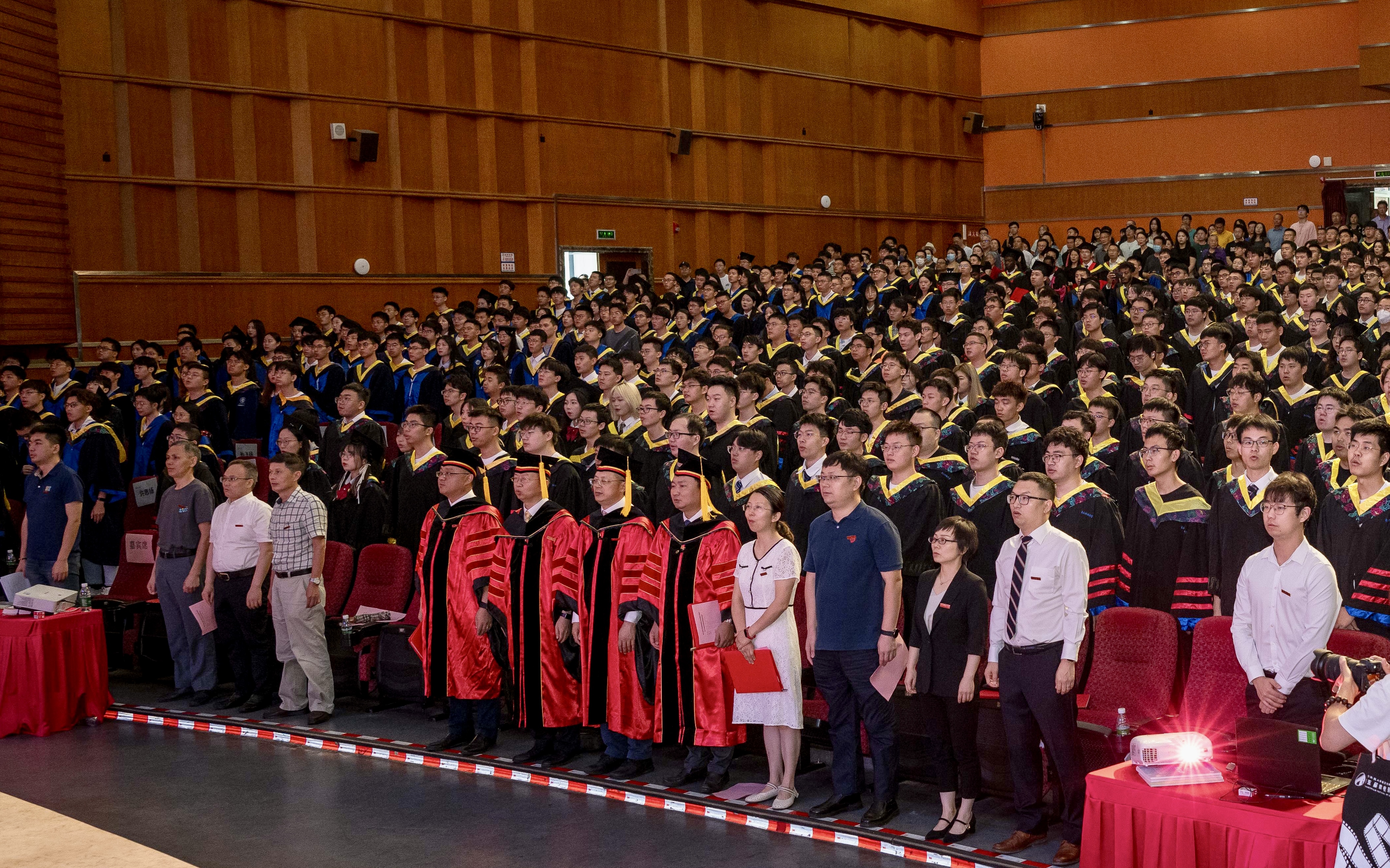 典礼伊始,全体师生齐唱国歌,本次典礼在庄严的国歌中拉开帷幕。