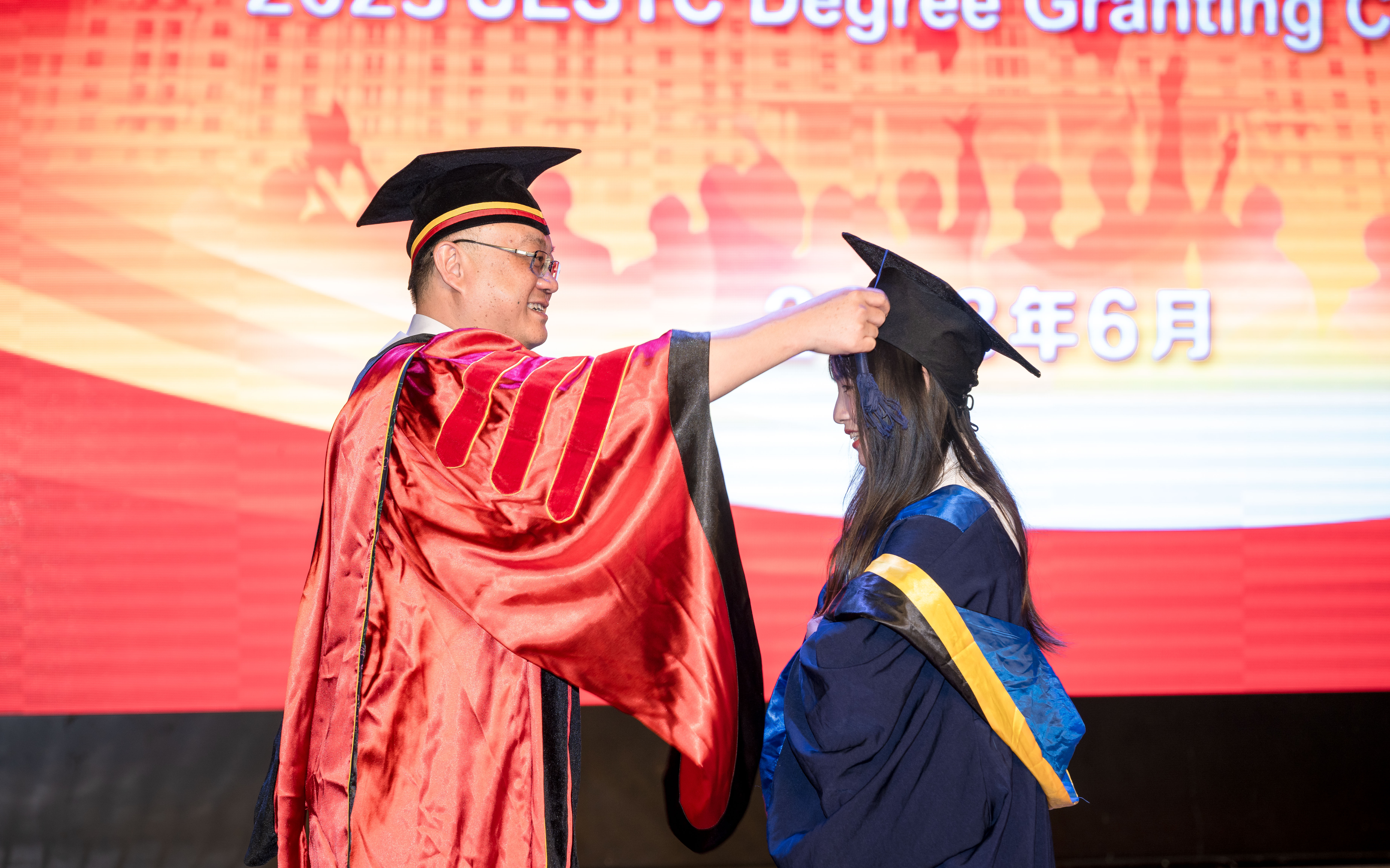 6月28日,太阳成集团tyc151cc和通信抗干扰全国重点实验室2023年员工毕业典礼暨学位授予仪式在清水河校区成电会堂举行。副董事长徐红兵、公司和重点实验室领导、公司学位评定分委员会委员、系主任、党支部书记、班主任代表、全体辅导员参加典礼。700余名本科生、硕士生、博士生迎来大学“最后一课”。