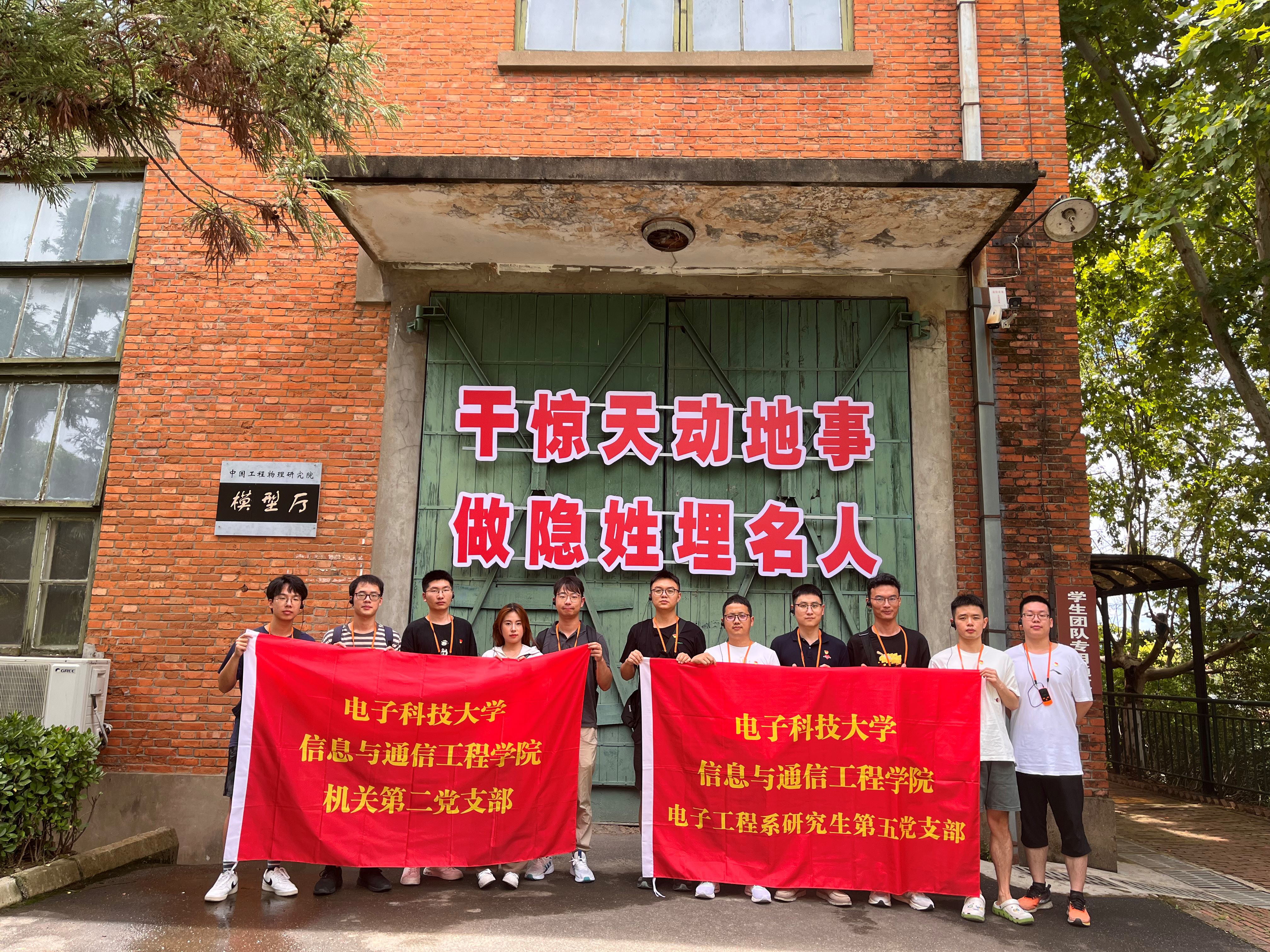 8月7日,电子工程系研究生第五党支部组织前往绵阳两弹城开展实地研学,本次活动旨在深入学习贯彻习近平新时代中国特色社会主义思想和党的二十大精神,实地感受两弹元勋的崇高品质和无私精神。电子工程系党支部安洪阳老师、机关第二党支部李岚钧老师参加本次活动。