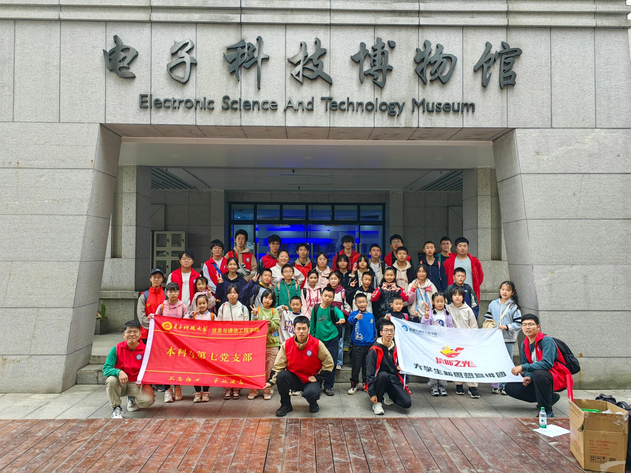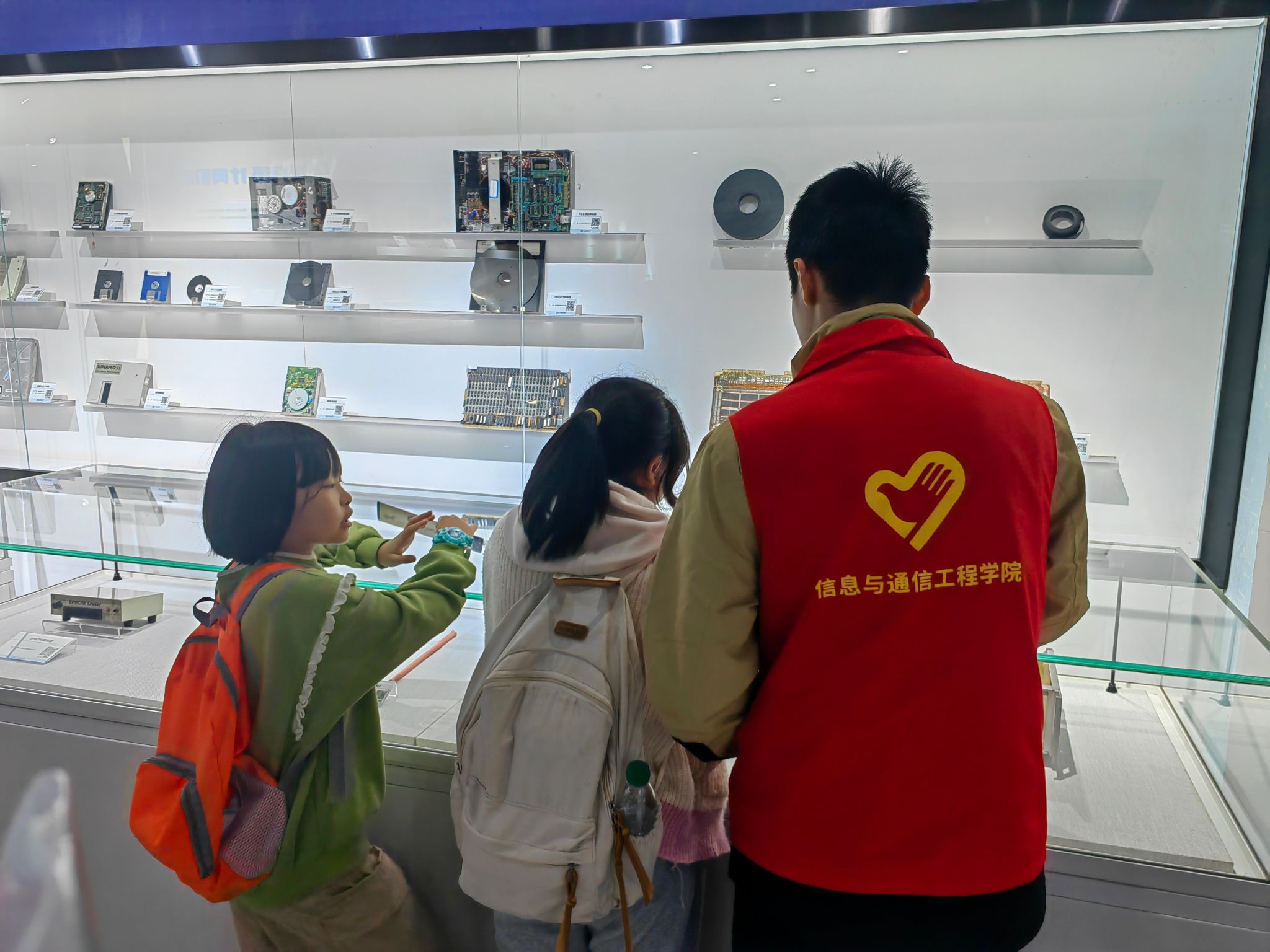 活动的第一站是太阳成集团tyc151cc博物馆,众多展品详细记录着早期通信技术的发展演变,也讲述了现代通信设备迭代更新的故事,整个博物馆充满了科技和创新的气息。在博物馆里,第七党支部成员马海宇、郝晟博结合所学知识,向孩子们讲述了许多历史上具有里程碑意义的通讯设备和技术成果。
