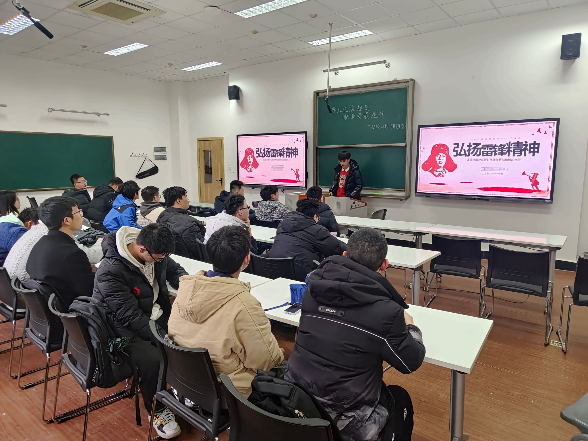 团日活动上,各班团支部书记介绍了雷锋精神的内涵与价值,强调雷锋精神作为中华民族优良传统美德的重要组成部分,一直滋养着我们的心灵。随后,同学们通过观看雷锋事迹纪录片、分享雷锋故事等形式,深入了解雷锋乐于助人的精神品质。在讨论环节,同学们积极发言,分享自己在学习和生活中如何践行雷锋精神,用善行回报社会。为增强活动的实践性,各团支部还组织了志愿服务活动。同学们自发结成小组,前往校园内的各个角落帮助清理垃圾、整理图书、协助老师搬运教学用品等,用实际行动诠释志愿服务精神。此外,多个班级以寝室为单位建立了“学习搭子”制度,为学习有困难的同学提供一对一辅导,帮助他们解决学习上的问题,体现雷锋精神在学习互助中的传承。