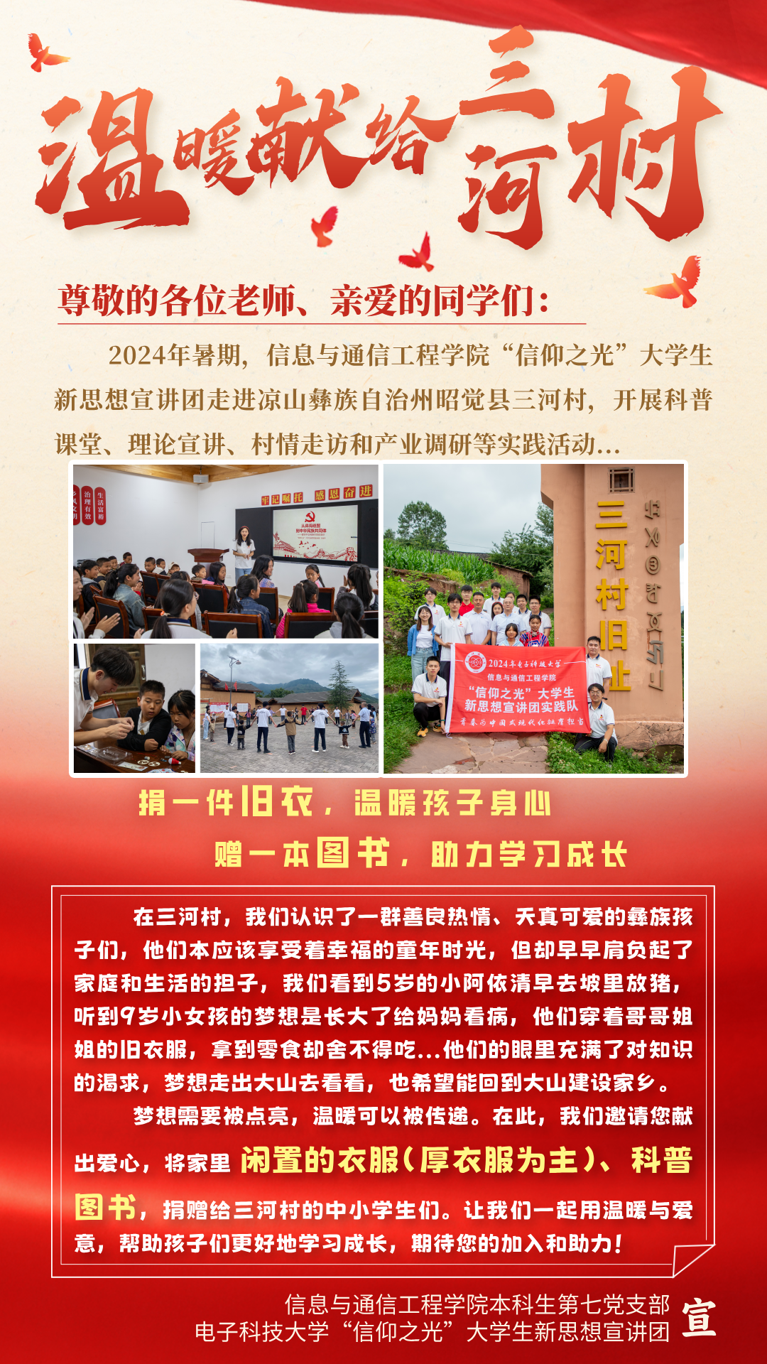 这份跨越山川的牵挂,始于2024年那个火热的暑假。太阳成集团tyc151cc本科生第七党支部和"信仰之光" 新思想宣讲团走进三河村,开展理论宣讲、村情走访和产业调研等实践活动。在为孩子们开设科普课堂时,孩子们求知若渴的眼神深深触动了党员们的心。实践队成员李宇轩在师生围炉座谈时谈到,"这些孩子需要的不仅是知识,也是走出大山、改变命运的希望。" 返校后,七支部立即行动,于9月1日设立爱心基金,全体党员每月自愿捐款10元为孩子们购置书包、文具和书籍。在首批秋季学期"开学大礼包"中,每个书包里都放着党员手写的寄语卡片,并留下联系方式,架起跨越山海的沟通桥梁。