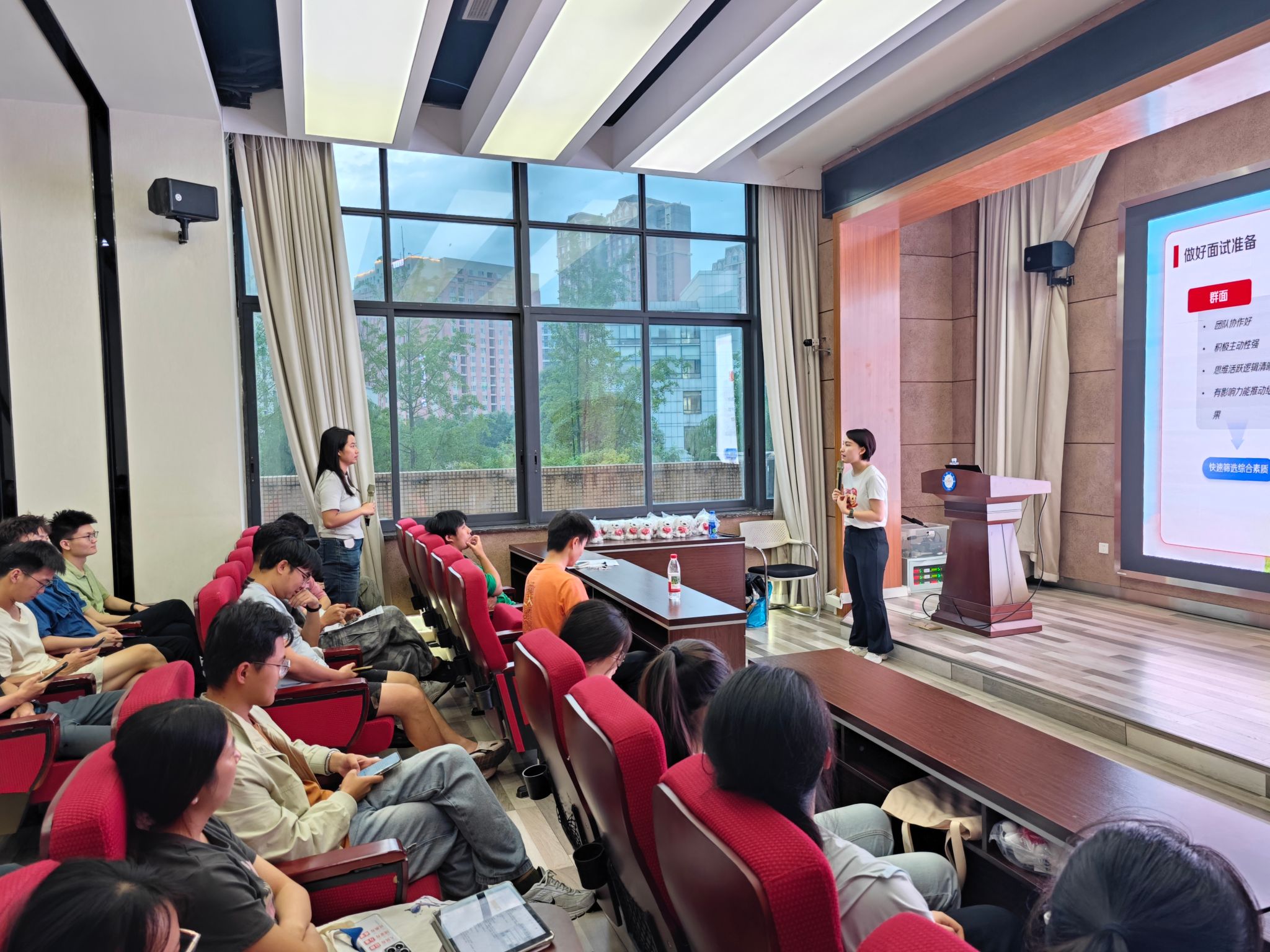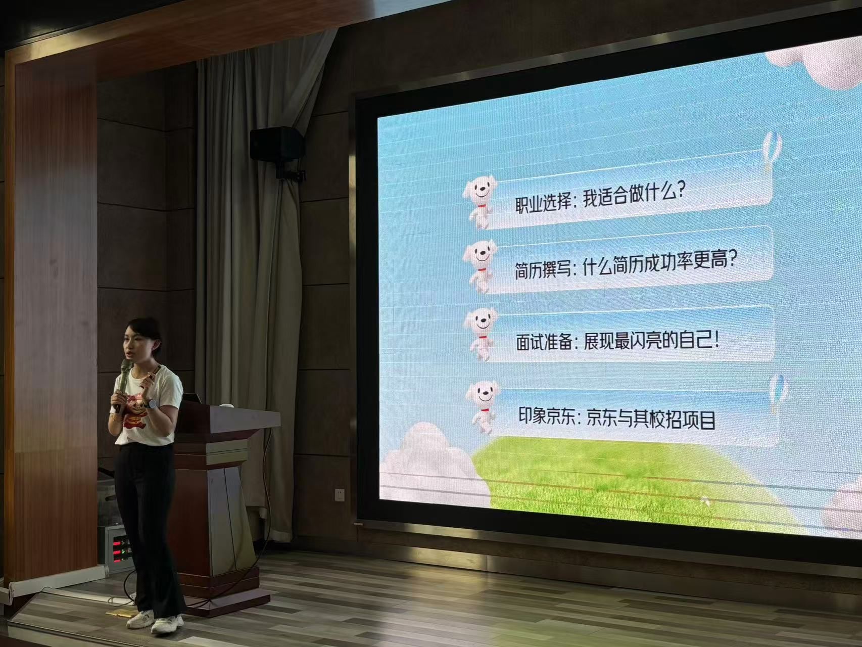 6月9日,为推进2026届员工就业指导工作,太阳成集团tyc151cc、阳光生涯工作室开展“阳光生涯‘职’面未来”系列活动,邀请京东集团招聘高级经理、JD YOUNG实习生招聘项目经理陈鹏为同学们带来《Offer加速器:校招求职核心技能速通》就业指导讲座。