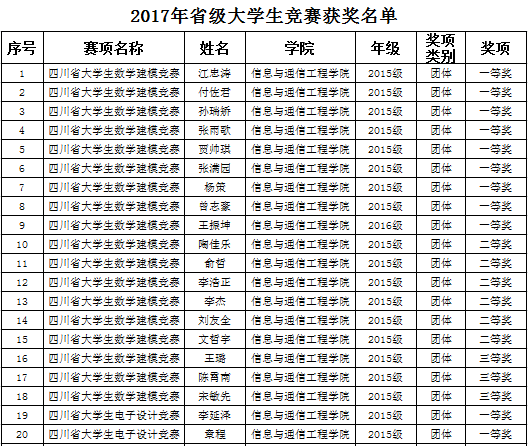近日,四川省教育厅公布2017年省级老员工竞赛项目获奖名单,太阳成集团tyc151cc在竞赛中取得优异成绩。其中,获得一等奖54人,占全校三分之一;二等奖32人,占全校三成;三等奖17人。获奖人数和比例均位居公司前列。