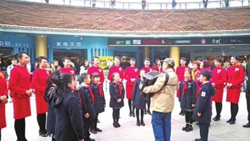 雷锋精神,人人可学;奉献爱心,处处可为。活动当天,公司员工志愿者一大早便从清水河校区出发前往天府广场,与来自川航乘务大队、石室中学、泡桐树小学等单位的等共计56人组成快闪队伍,伴随着志愿者的手风琴演奏,唱响了《学习雷锋好榜样》。
