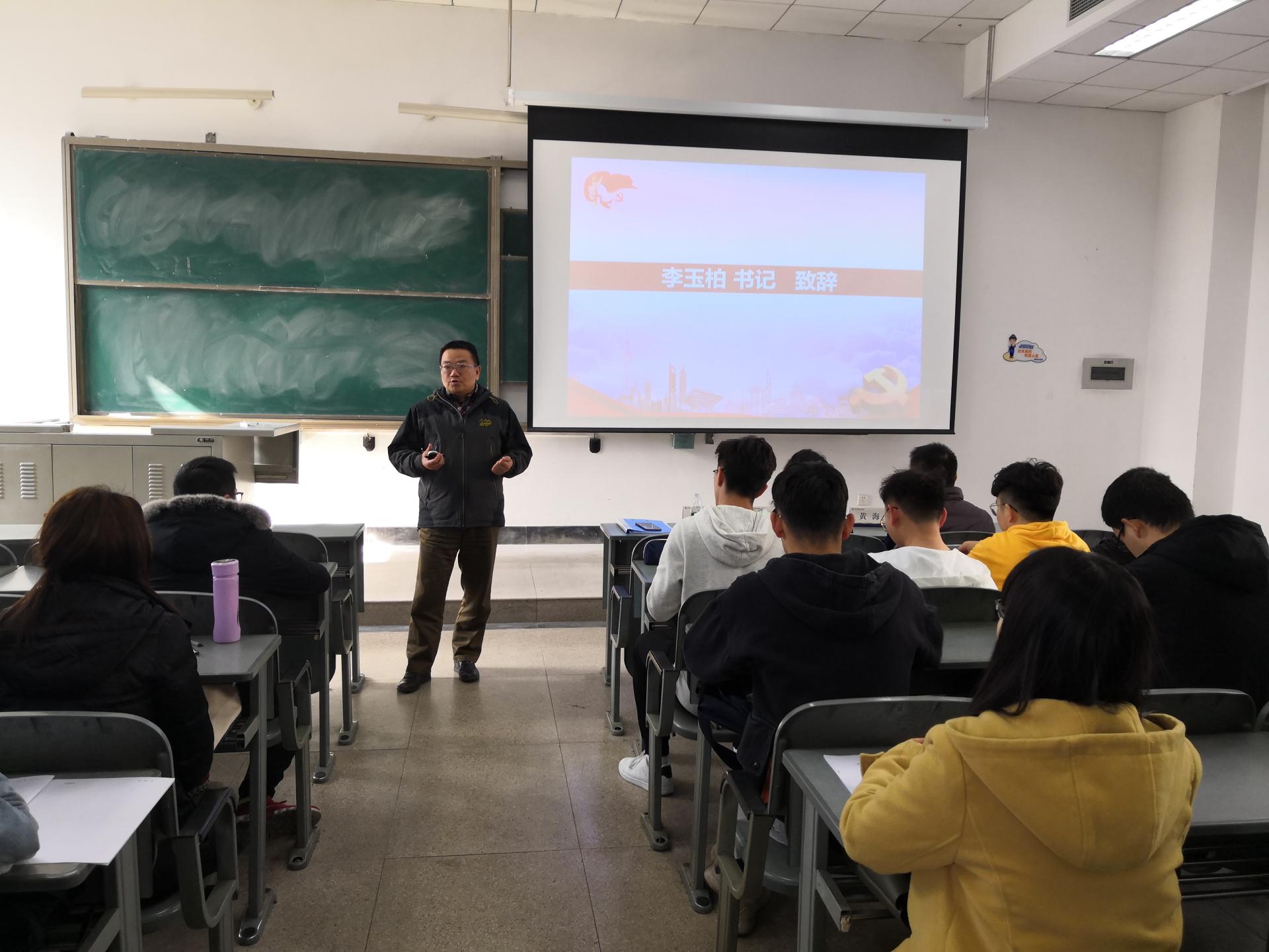 典礼伊始,李玉柏发表讲话,他希望同学们不仅做到在行动上入党,还要在思想上入党,其次要注重陶冶情操,明确入党动机。李玉柏表示作为一名有志入党的同学都应该不忘初心,牢记使命,始终立足于为人民和人类做出贡献。最后,他鼓励各位同学能够以一名中国共产党党员的标准来要求自己,认真学习,最终学有所成。