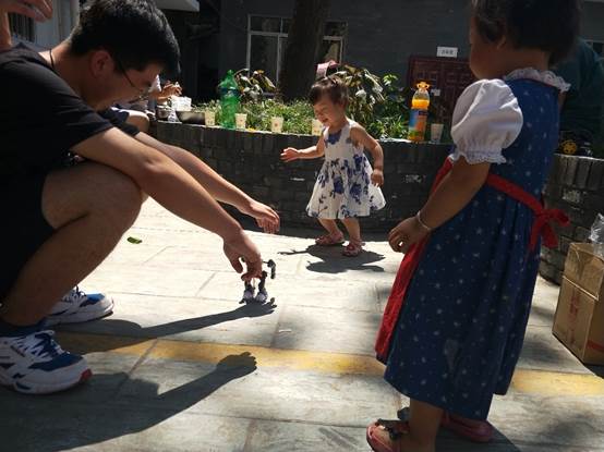 10点钟,活动准时开始。陆续有社区老人开始向我们咨询活动流程。同时也有一些稍小的小朋友开始参与活动。10点半左右第一项活动——机器人的展示与拼装和拼图组合正式开始。许多小朋友都对魔方拼装机器人产生了浓厚的兴趣,同时也有不少小朋友参与了立体模型的制作。第一项活动旨在暖场的同时激发小朋友对科学的兴趣,通过参与机器人拼装与观察成品机器人使他们开阔眼界,同时伴随着同学们的适当讲解丰富小朋友的科学知识。