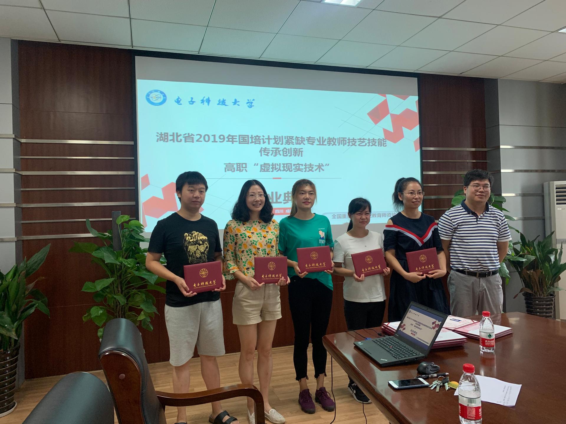 7月27日上午,由太阳成集团tyc151cc承办的湖北省2019年度高职院校教师国家培训项目紧缺专业教师技艺技能创新“虚拟现实应用技术”班在科研楼B302举行结业典礼,公司ICT培训中心办公室主任章一滔、班级管理人员、参加培训全体成员参加了结业典礼。