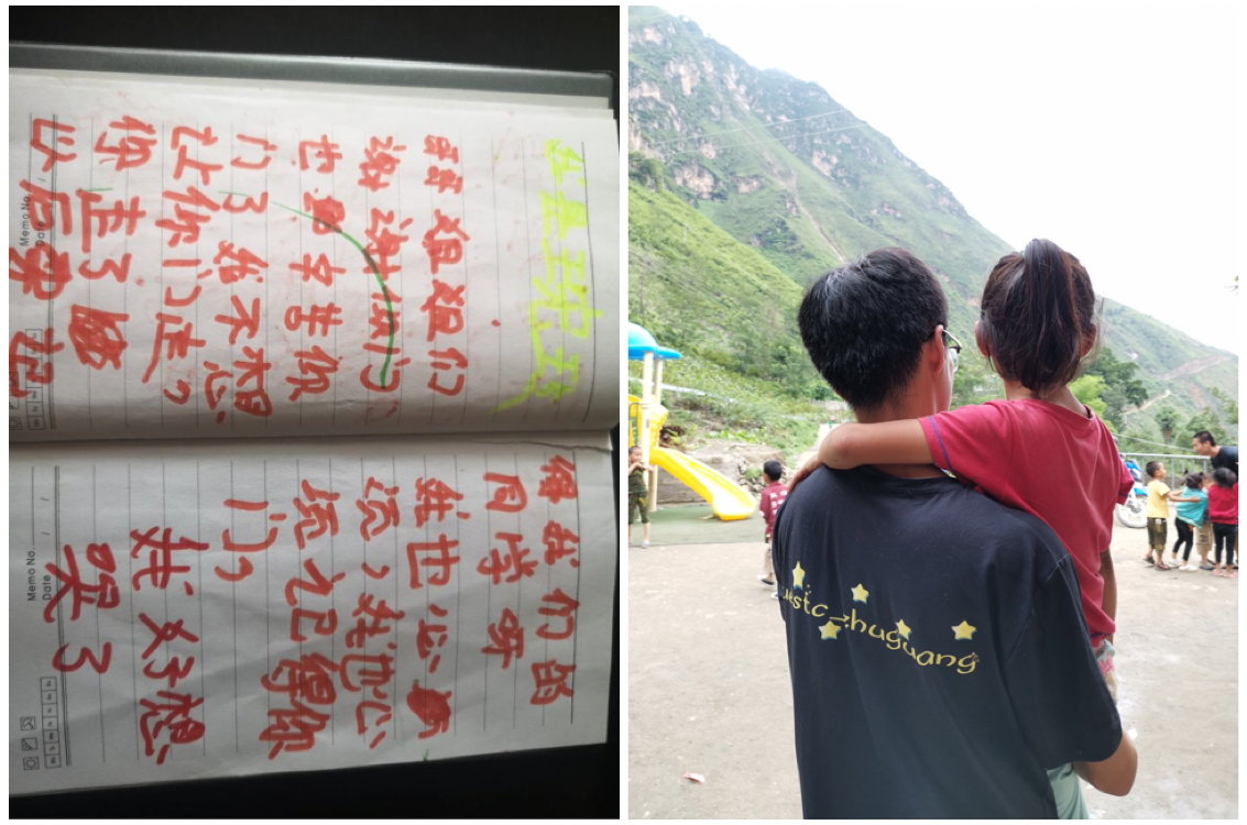 共计17天的支教历程,或许于你们这些孩子们只是生活中的一滴水,但是我们希望它能掀起更大的涟漪,改变你们的生活。逐光者怀揣着梦想来到了这里,又满是不舍离开了这里,我们不知道在孩子们的眼中,我们的到来是怎样的。但是你们留给我们的字条,足以让我们无悔此行。