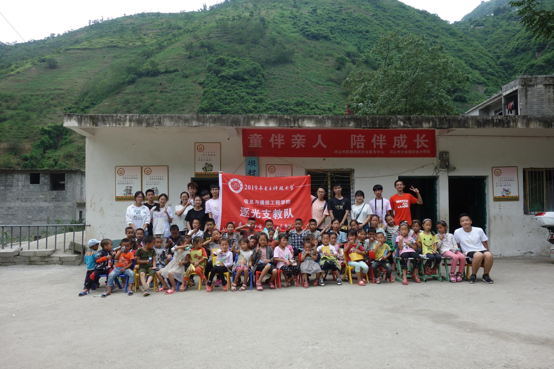 2019年7月8日,伴着淅淅沥沥的小雨,历经数小时山路的颠簸,逐光支教队的队员们抵达了四川省凉山州雷波县元宝山乡田坝村。蜿蜒的公路盘山而上,半步峭壁,半步山谷,车辆行驶于其中,着实令人时刻提心吊胆。司机告诉我们:前不久,山上滚下一颗大石头,正落在一辆行驶的货车上,造成很大伤亡。”从村子里向外眺望,远处是一片高山连绵,这天然的屏障隔绝了村里与村外,也限制了孩子们的走出去与我们的走进来。