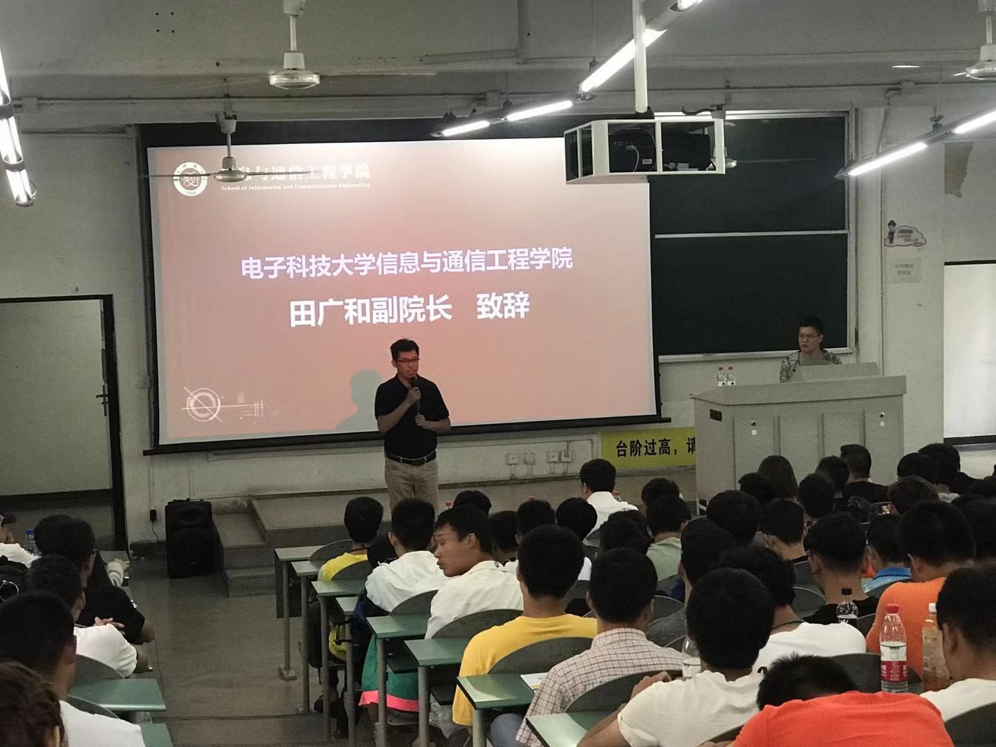 开学典礼在庄严的国歌声中拉开帷幕。田广和副经理代表公司对今年报读公司本科示范班全体新生表示欢迎,对公司和公司的情况作了细致的讲解。他提出在成电的学习是为以后发展的准备和铺垫,首先要全面了解自我、认清当前形势,以积极心态、坚韧毅力,为实现目标而不懈努力;其次要学习做一个人格健全的人、做好完善圆满的事、做透严谨精深的学问,实现三位一体的全面发展。希望同学们不负韶光,珍惜青春年华,积极拼搏奋斗,实现自身的立德立学,走向人生的成才成功。