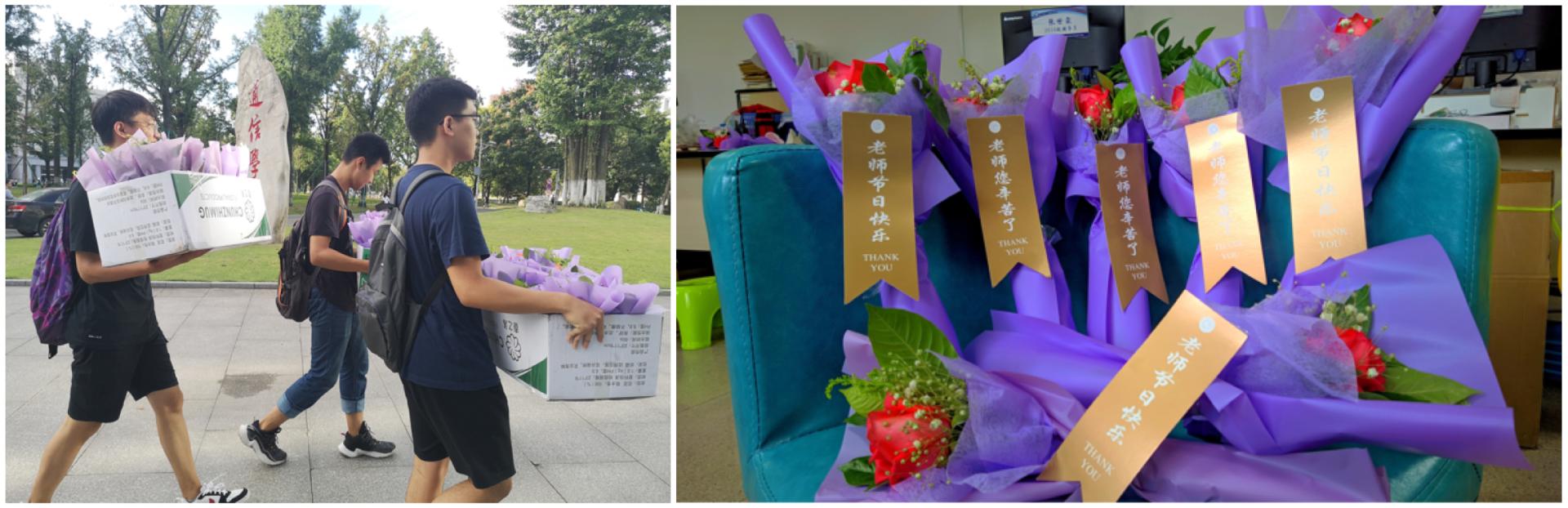 院员工会代表向各位奋战在教学一线的老师们在课前送去了精美的花束,感谢各位老师对公司发展的辛勤付出,对同学们成才的用心指导,并向他们说一句“老师,您辛苦了”。