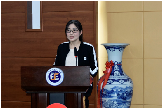 公司上一届研会主席张同梦雪发言,她与大家分享了个人的研会经历,表达了自己对公司研究生会的认识,最后希望大家积极参与、主动奉献,在与研会共同成长进步的同时也能收获美好的情谊。