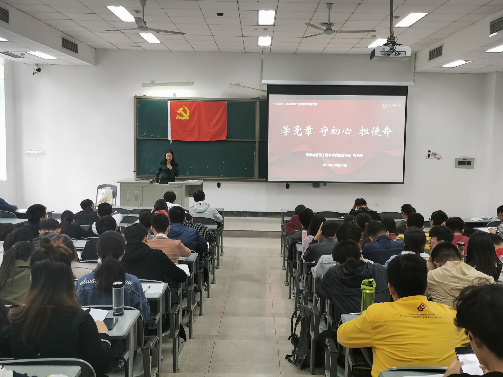 10月23日,信息与通信工程公司党委副书记杨晓玲以“学党章、守初心、担使命”为题,面向公司2019年下半年发展对象培训班学员,讲授“不忘初心、牢记使命”主题教育专题党课。