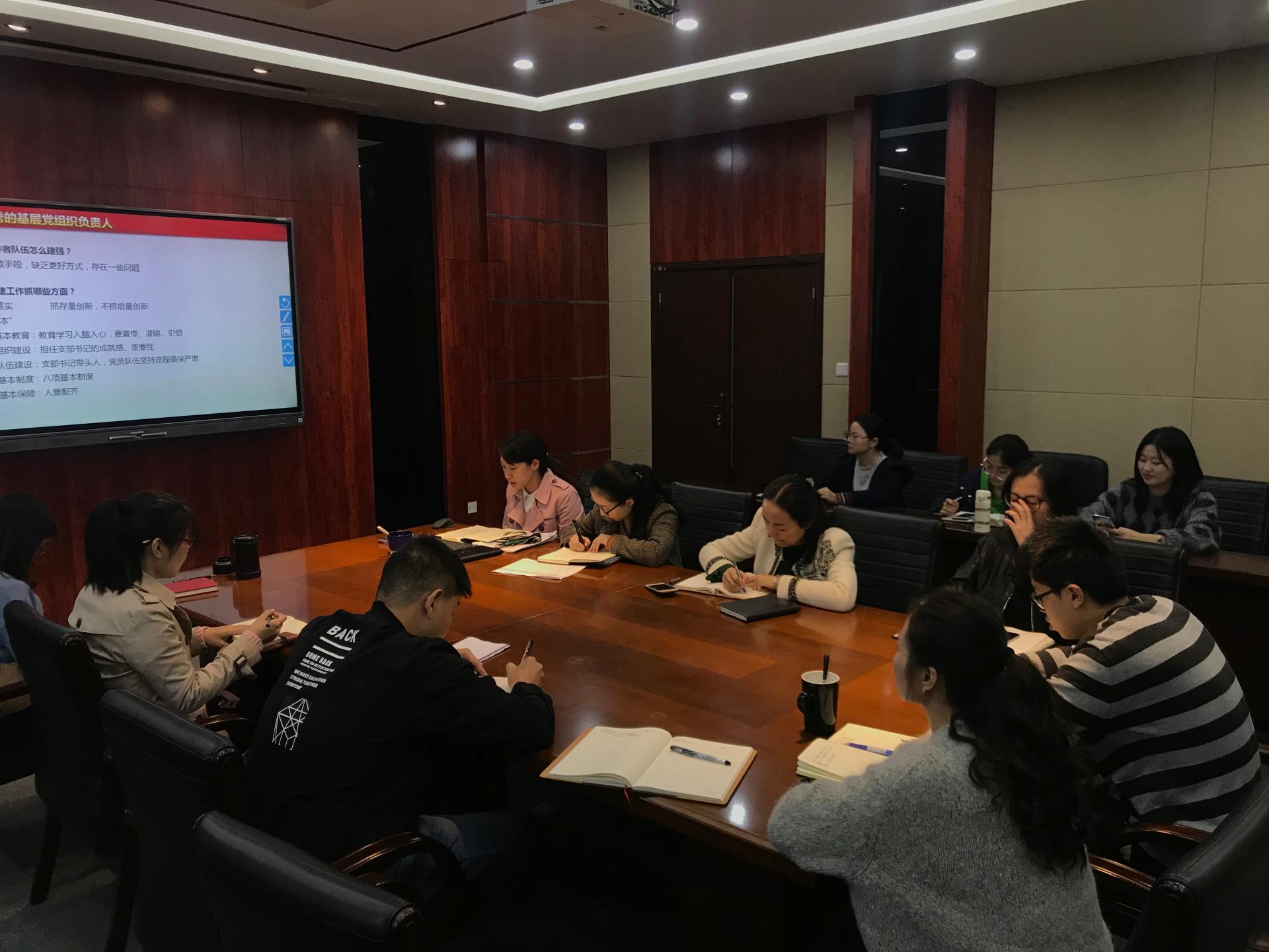 11月5日,为贯彻落实“不忘初心、牢记使命”主题教育,公司机关第二党支部举行专题党课学习,机关第二党支部书记雷蕾老师以“如何建好基层党组织”为题,为支部全体成员讲授党课。