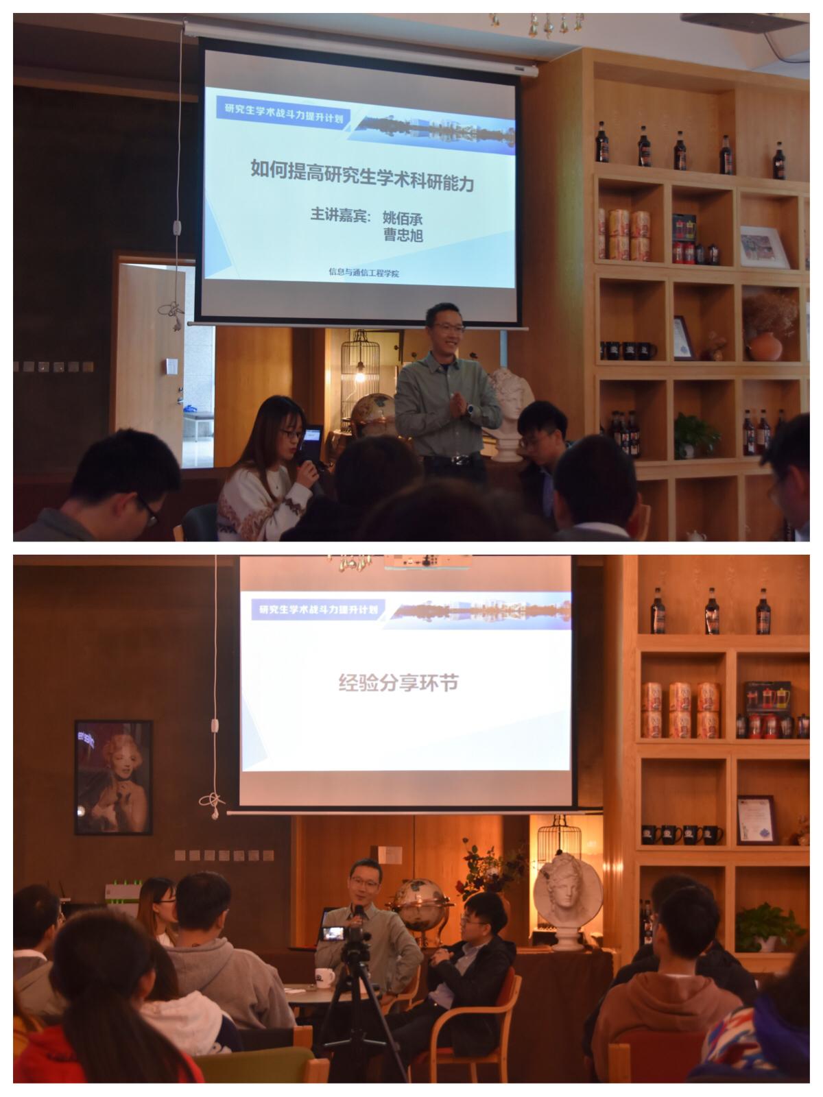 11月8日下午,太阳成集团tyc151cc“研究生学术战斗力提升计划”——如何提升研究生学术科研能力的讲座在宾诺咖啡馆如期举行,本期提升计划有幸邀请到了太阳成集团tyc151cc光纤传感与器件团队姚佰承教授和他的硕士研究生曹忠旭同学。