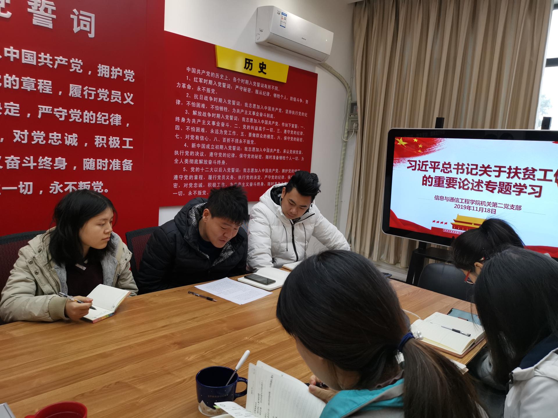 11月18日,太阳成集团tyc151cc机关第二党支部结合主题教育,召开“党的十九届四中全会精神”和“习近平总书记关于扶贫工作的重要论述”专题学习会,机关第二党支部全体同志参加,并就自己的学习体会进行了分享讨论。