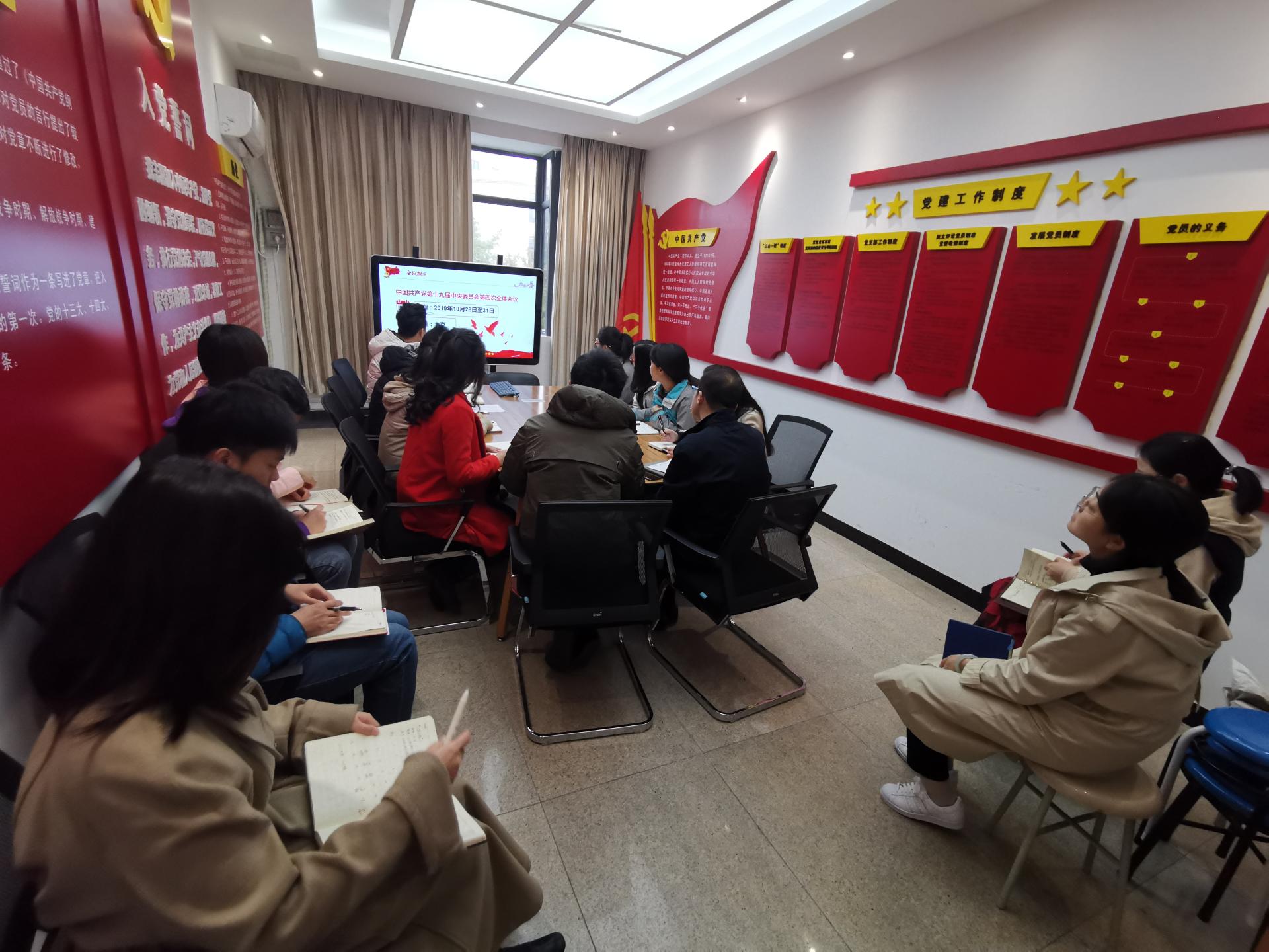 党支部书记雷蕾带领支部同志们一起学习领会党的十九届四中全会精神,全会强调,坚持和完善中国特色社会主义制度、推进国家治理体系和治理能力现代化是全党的一项重大战略任务。雷蕾谈到:“我国国家制度和国家治理体系具有多方面的显著优势,而这些显著优势,也正是我们坚定中国特色社会主义道路自信、理论自信、制度自信、文化自信的基本依据。我们要把学习贯彻十九届四中全会精神与“不忘初心、牢记使命”主题教育结合起来,与推进各项重点工作结合起来,与改革发展稳定各项工作结合起来,以优异成绩彰显奋力走在前列的使命担当。”