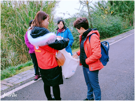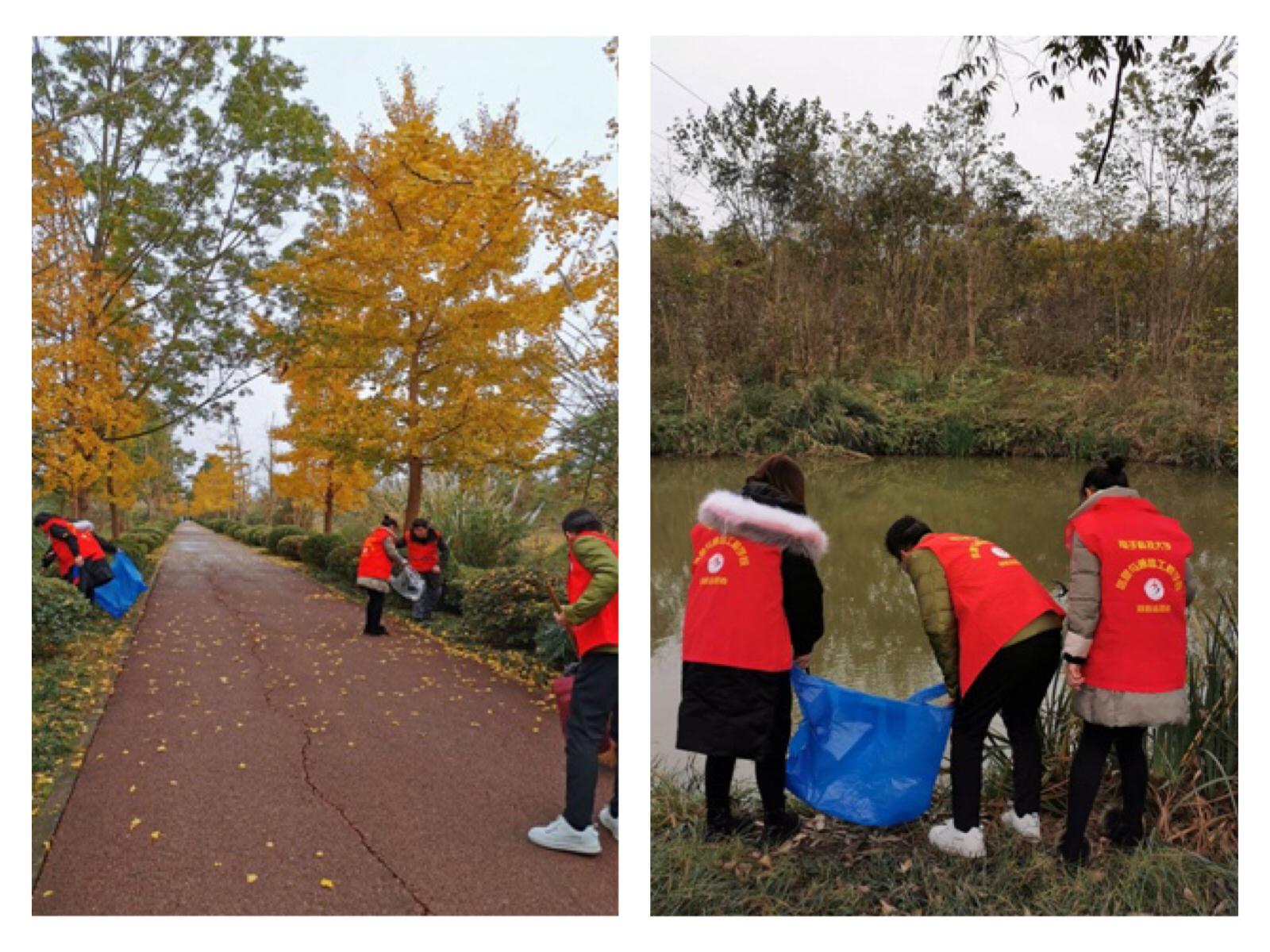 志愿者看到环保工人一大早就开始了辛勤劳作,也自觉开始清理河堤和道路两旁的垃圾。在活动现场,志愿者们手拿铁钳、撮箕、垃圾袋等工具,三人一行,五人一组,逐寸搜索清理河堤垃圾。随后志愿者们清扫了飘落在公园健身道路上的银杏叶,最终使白鹭湾湿地公园整洁一新。