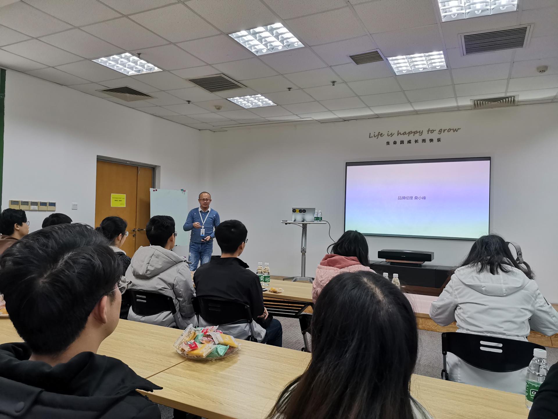 随后,公司品牌经理桑小峰老师详细介绍了极米成长史,在短短6年时间内极米在智能投影领域就占据了一席之地。过程中桑老师也积极地和同学们进行了互动。