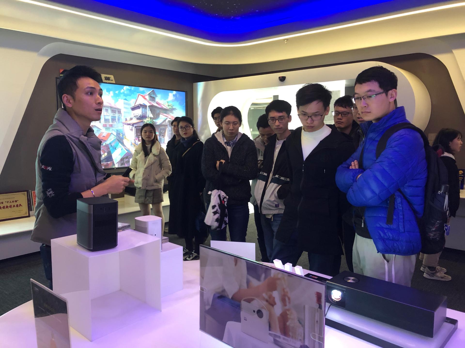 活动开始,公司Hr戴芷婉老师带领同学们参观了极米的产品展厅,同学们也体验了产品,享受到了极致光与影的魅力。