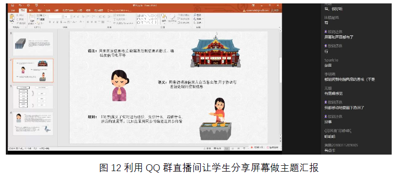 讨论课前,教师按计划将讨论主题发布给员工,员工在小群中分工合作完成主题报告的准备。老师们选择了腾讯会议或QQ群的直播排麦方式,老师做主持,员工轮流主讲,分享发言者屏幕和听取他们的发言。