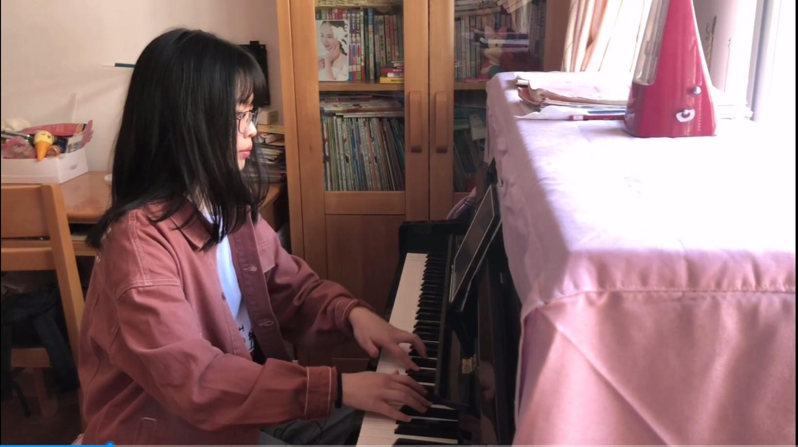 支部党员张淇韵和温欣分别用钢琴和小提琴演奏的方式,致敬白衣天使,致敬每一个平凡的中国人。共同为武汉加油,为中国祈福。