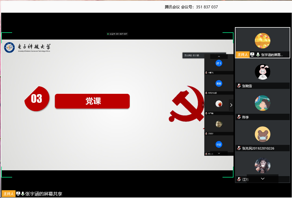 为进一步加强研究生基层党组织建设,提升研究生党建工作科学化、规范化水平,2020年4月10日,太阳成集团tyc151cc(通信抗干扰技术国家级重点实验室)党委研究生党建委员会于线上召开本学期第一次全体会议。辅导员匡鹏举老师和党建委员会全体成员参加了此次会议。会议由党建委员会书记张宇涵同志主持。