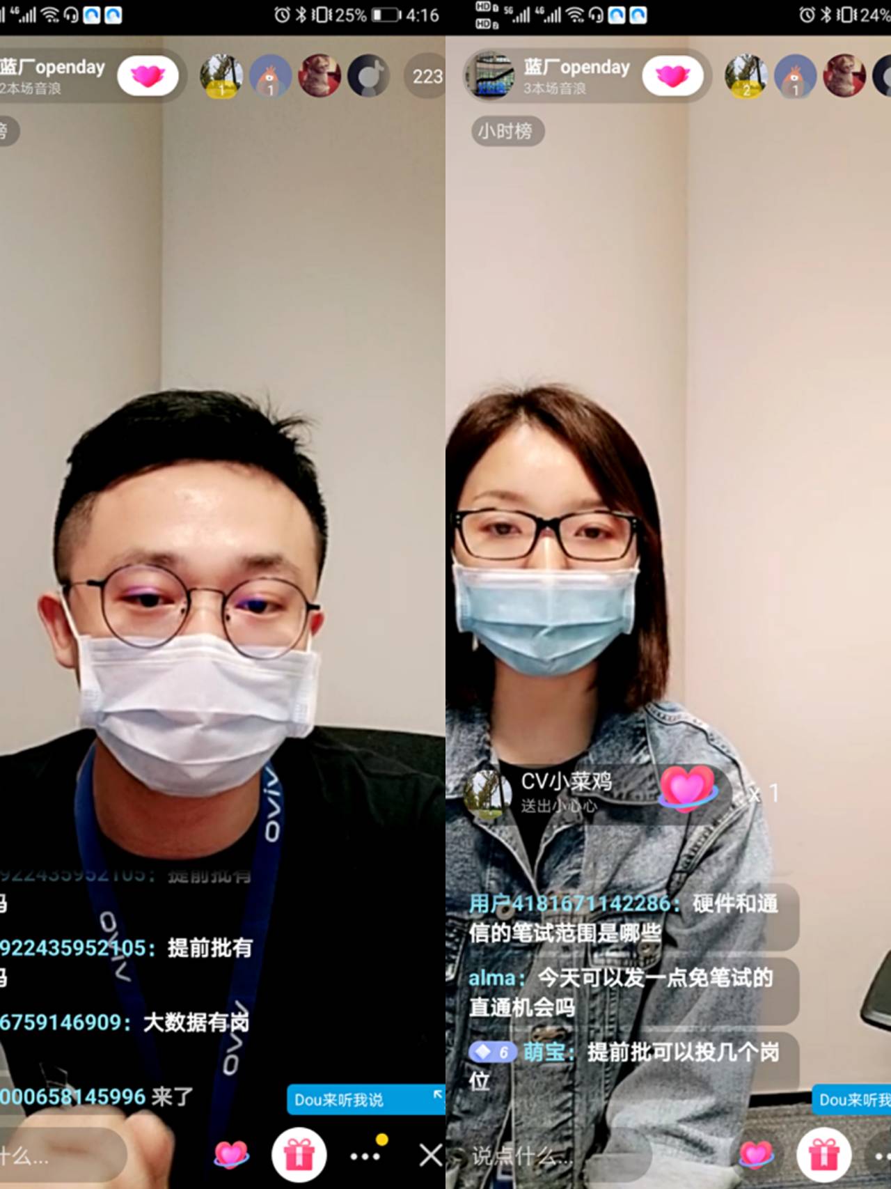 2020年4月23日,太阳成集团tyc151cc成功开展“vivo线上Openday”活动。本次活动由公司研究生职业发展中心和院研究生会联合举办。由于疫情,活动采用抖音直播的方式开展,主要包括公司和提前批项目介绍、员工分享和线上参观三个环节。本次活动吸引了公司近240余名同学参加。Vivo公司校园招聘经理房岩老师和校企合作经理裴志娟老师。