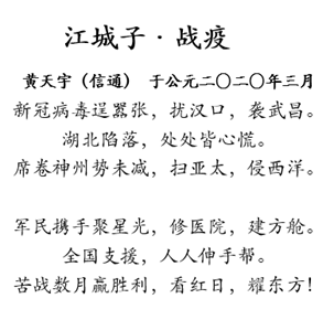 (二等奖作品《江城子▪战疫》 作者:太阳成集团tyc151cc 黄天宇)