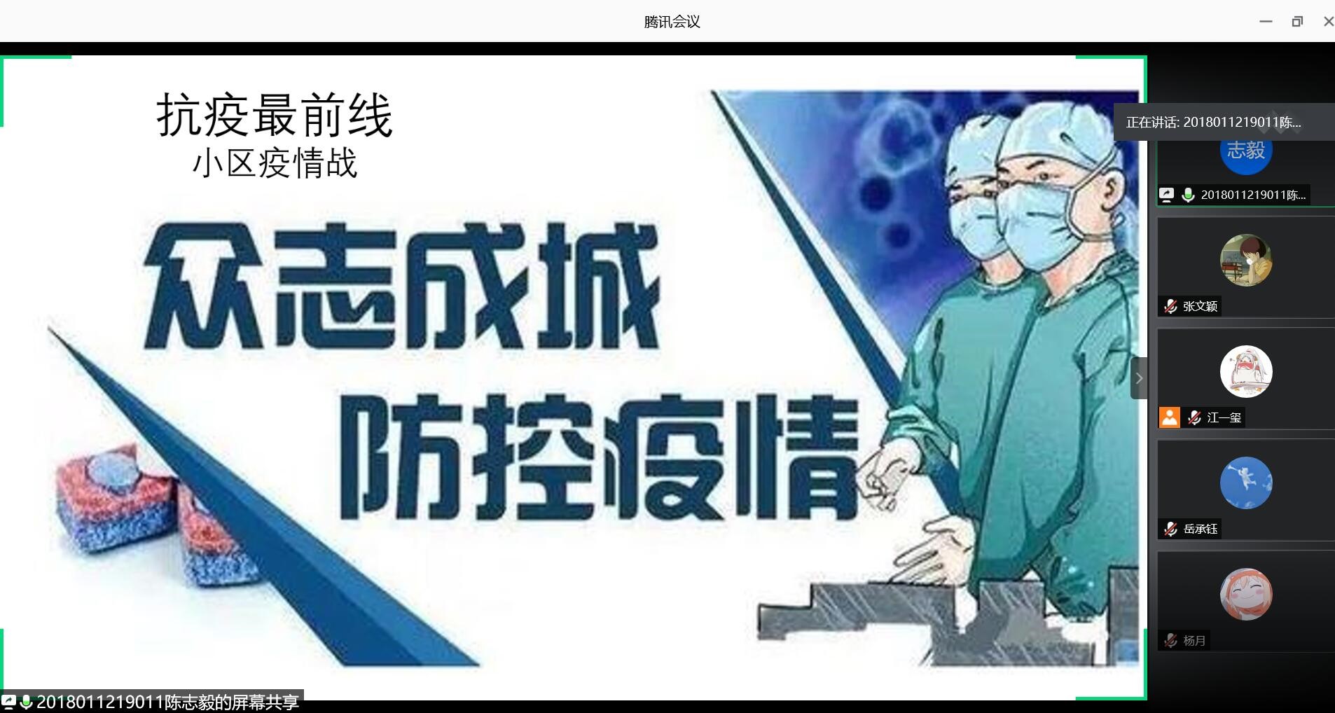 每个人都以自己的方式参与了这场全民抗疫的战斗中。党支部书记王思月鼓励大家说道:作为青年党员,要承担起自己的责任,以个人的先进去影响他人,做有理想、有本领、有担当、乐奉献的青年一代。