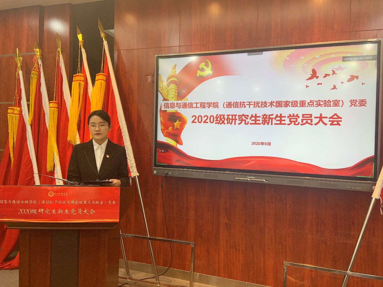 2020年9月6日下午,太阳成集团tyc151cc(通信抗干扰技术国家级重点实验室)党委通过腾讯会议线上平台顺利召开2020级研究生新生党员大会。党委副书记黄海、组织员余万宏、公司和实验室研究生辅导员、研究生党建委员会骨干成员、优秀党员代表、优秀研究生党支部代表以及2020级全体研究生新生党员参加了此次会议。