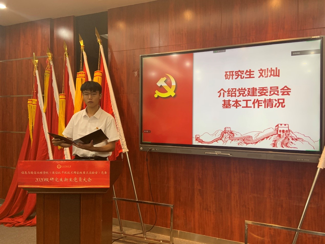 研究生党建委员会书记刘灿从开阔视野、沟通合作、社会实践三方面分享了同学在研究生党建委员会的收获,并诚邀新生党员加入党建委员会,助力党委基层党支部建设。