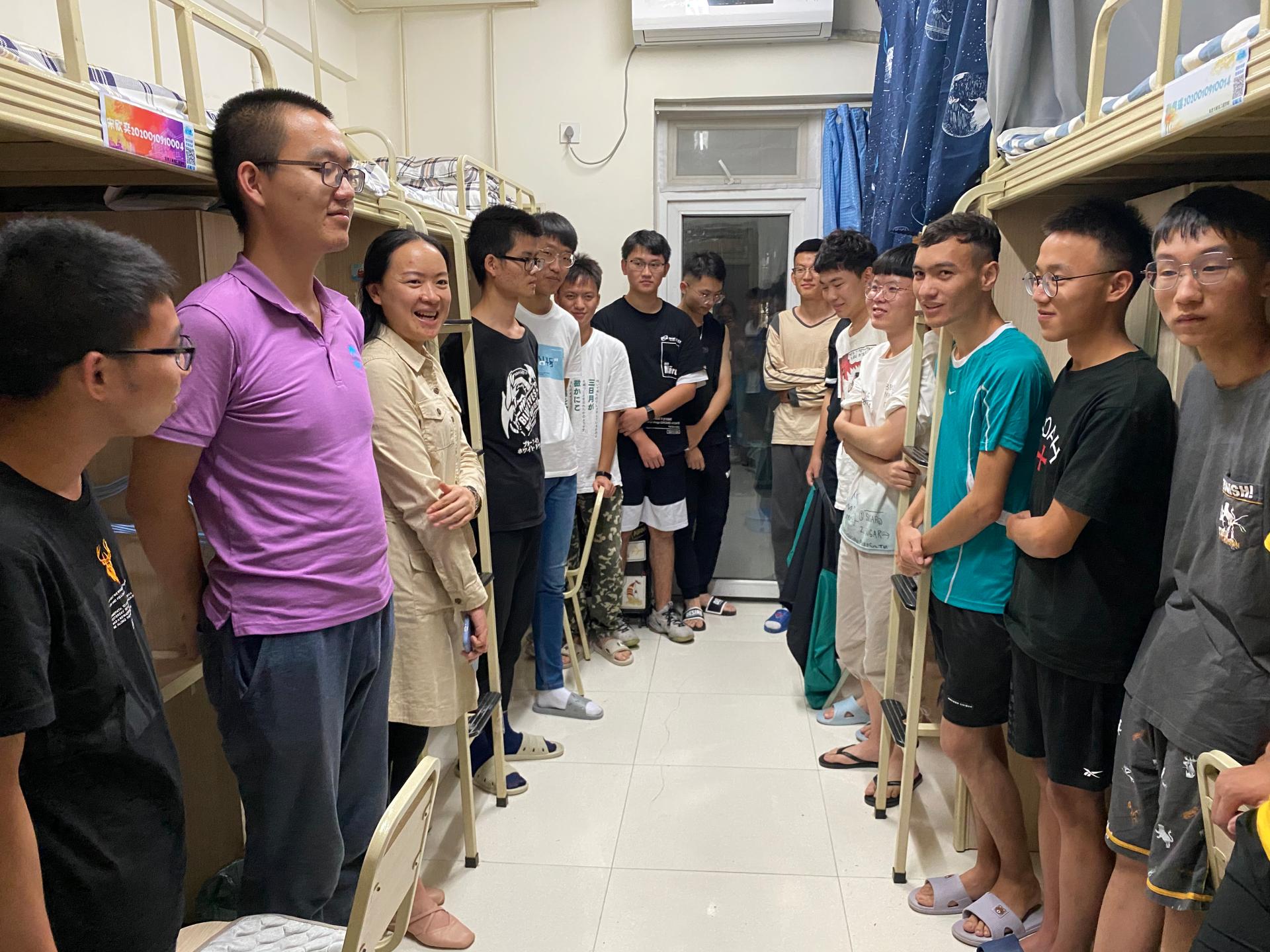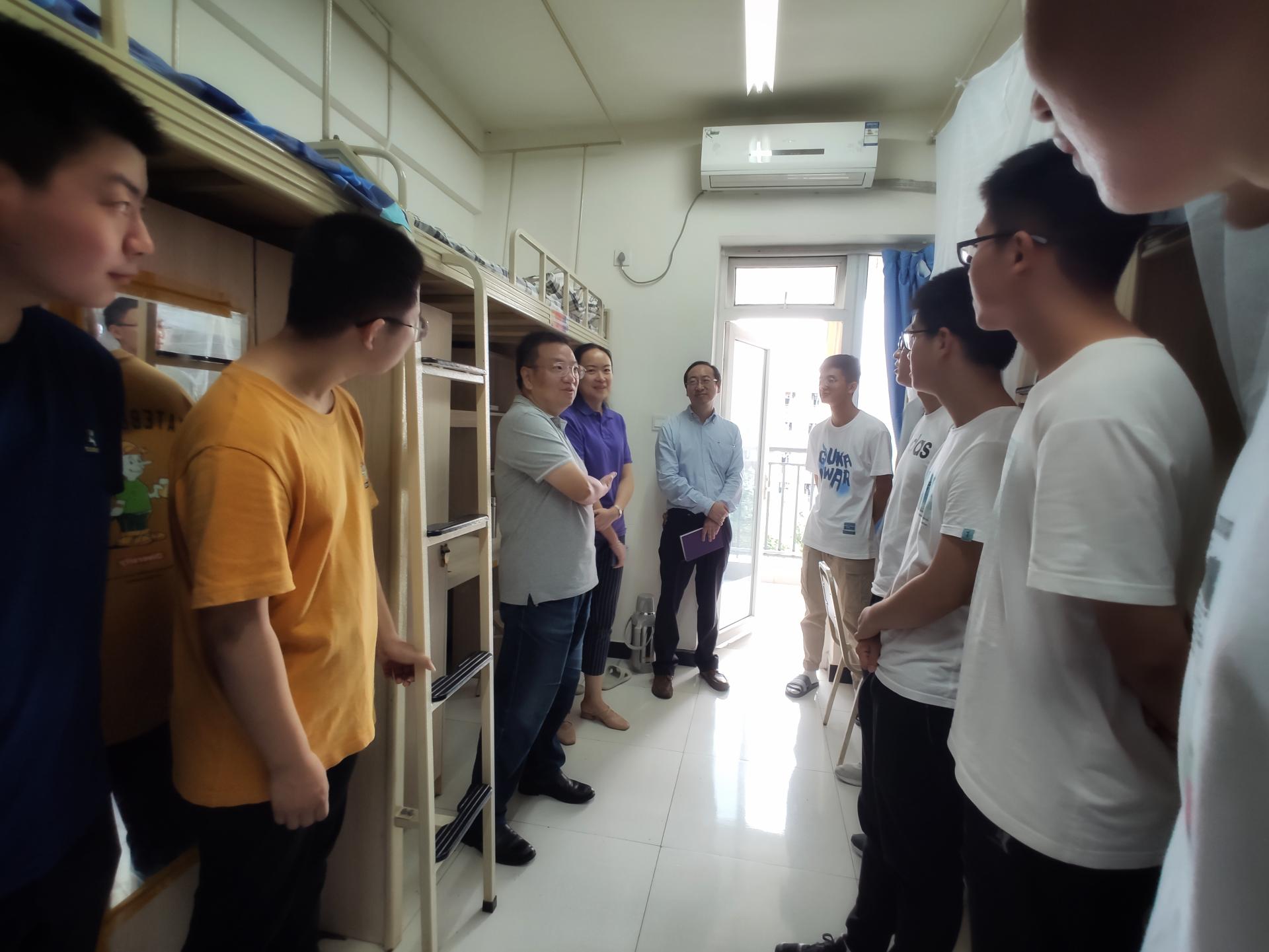 公司党委副书记申小蓉、公司党委书记李玉柏、副书记杨晓玲、副经理凌翔和年级辅导员来到寝室看望新同学。与新同学们亲切交流,关心同学们学习、生活情况,鼓励大家尽快适应老员工活,调整节奏,祝福同学们能找到喜爱的方向并为之努力奋斗。