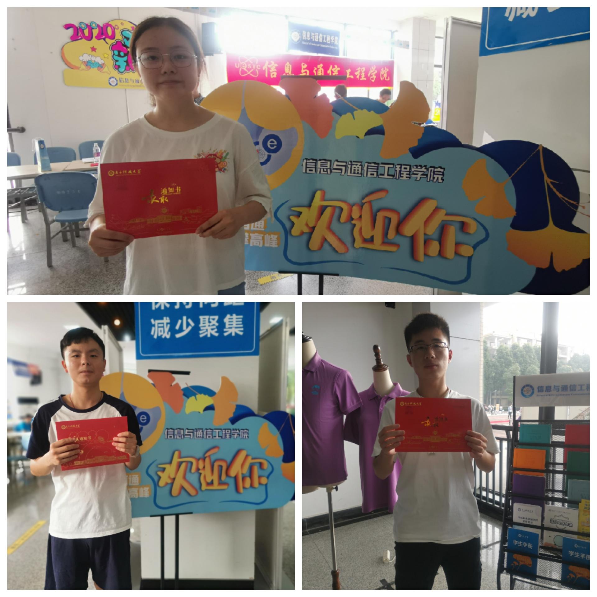 迎新点除了标语、指示牌、资料展架还有什么?当然是我们的新生小可爱啦!不知道手里捧着令人激动的录取通知书,心跳有没有加速呢~