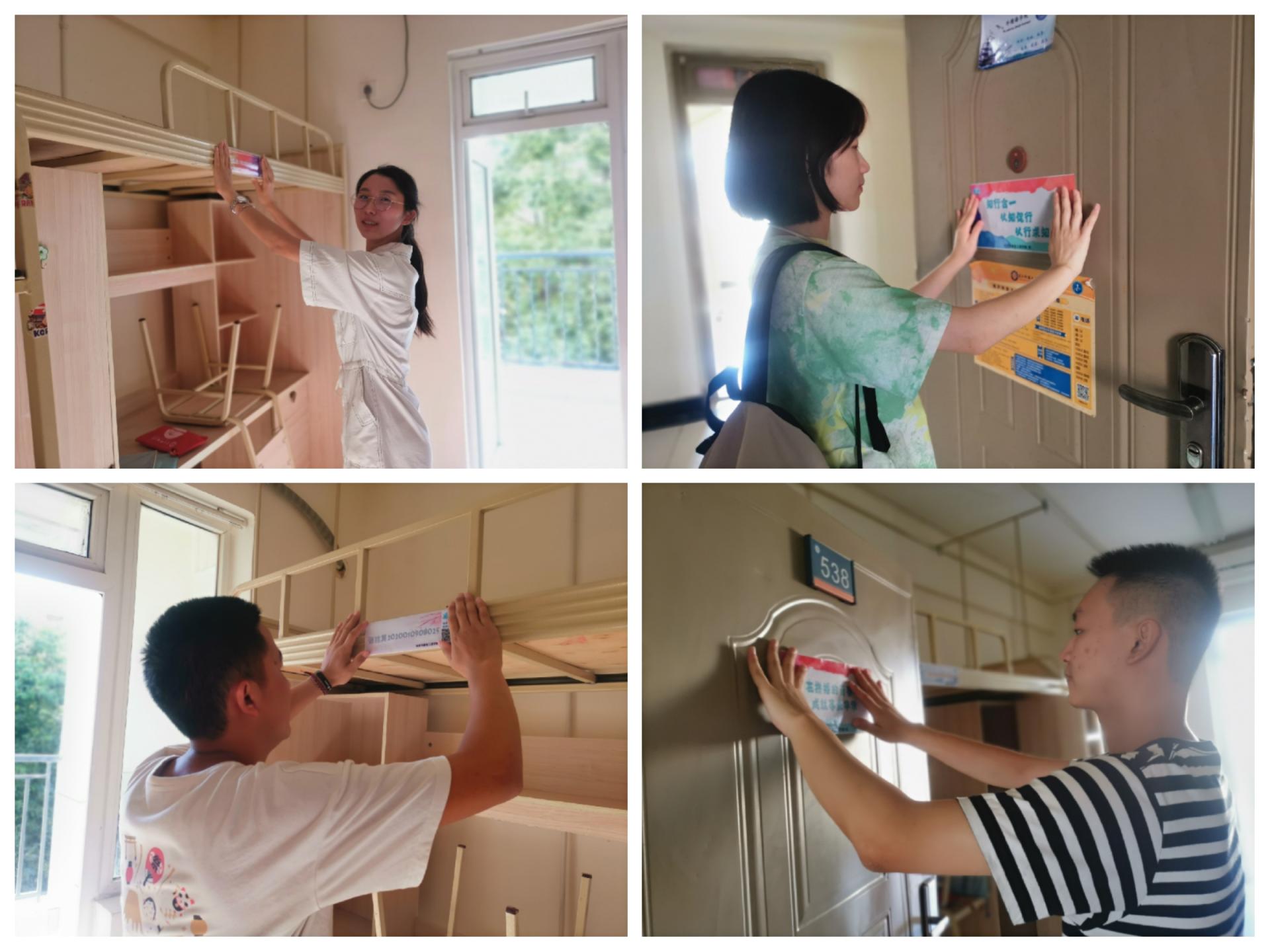 赶在新生到校之前,导生小哥哥小姐姐赶往寝室为每位新生放置“大礼包”。