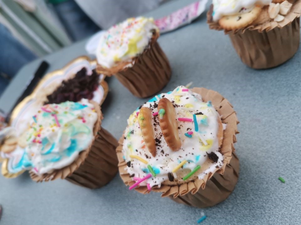 在拿到材料之后,同学们领取相应蛋糕胚开始制作自己的蛋糕,尽情地把自己的创作灵感用在蛋糕的制作上。在制作的过程中,同学们互相探讨,交流想法,收获友谊,增长能力。蛋糕制作完成后,再细细地品尝自己的劳动成果,每个人脸上都洋溢着满足与喜悦。