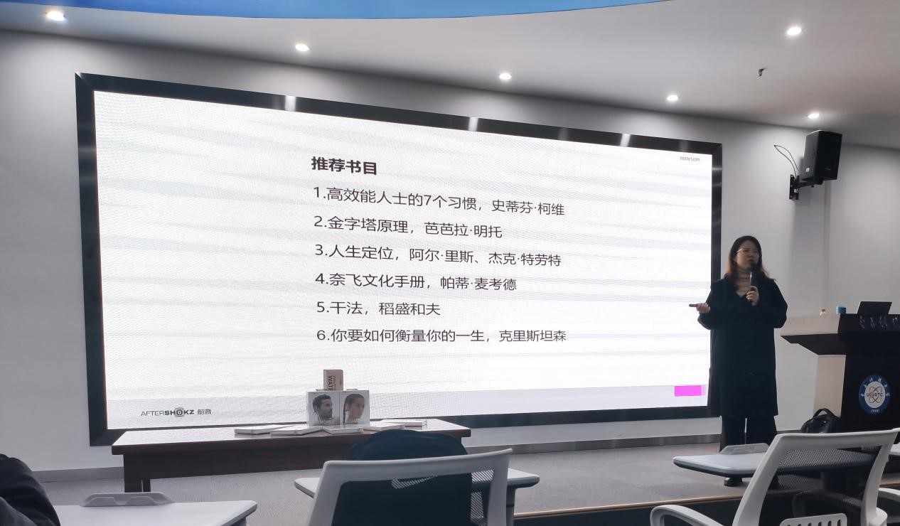 第三个方面“How to win win?”,怎样才能长久的脱颖而出呢?在思想方面,要有长远的眼光;修身方面,不能局限自己,要做到方方面面都很优秀;在为人方面,应三省吾身。张老师还强调了要积极主动,平时要注意培养沟通能力,沟通能力在之后的人生中会越来越重要,并推荐了六本相关书目供大家学习。