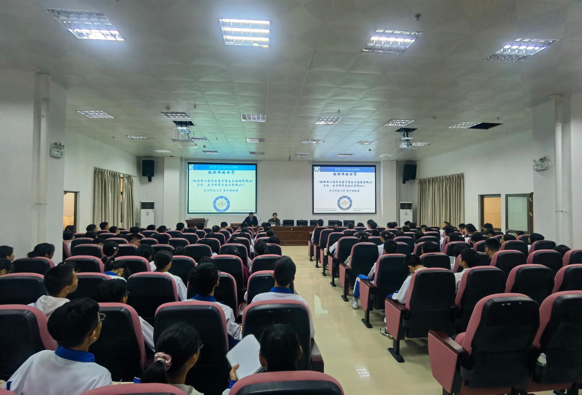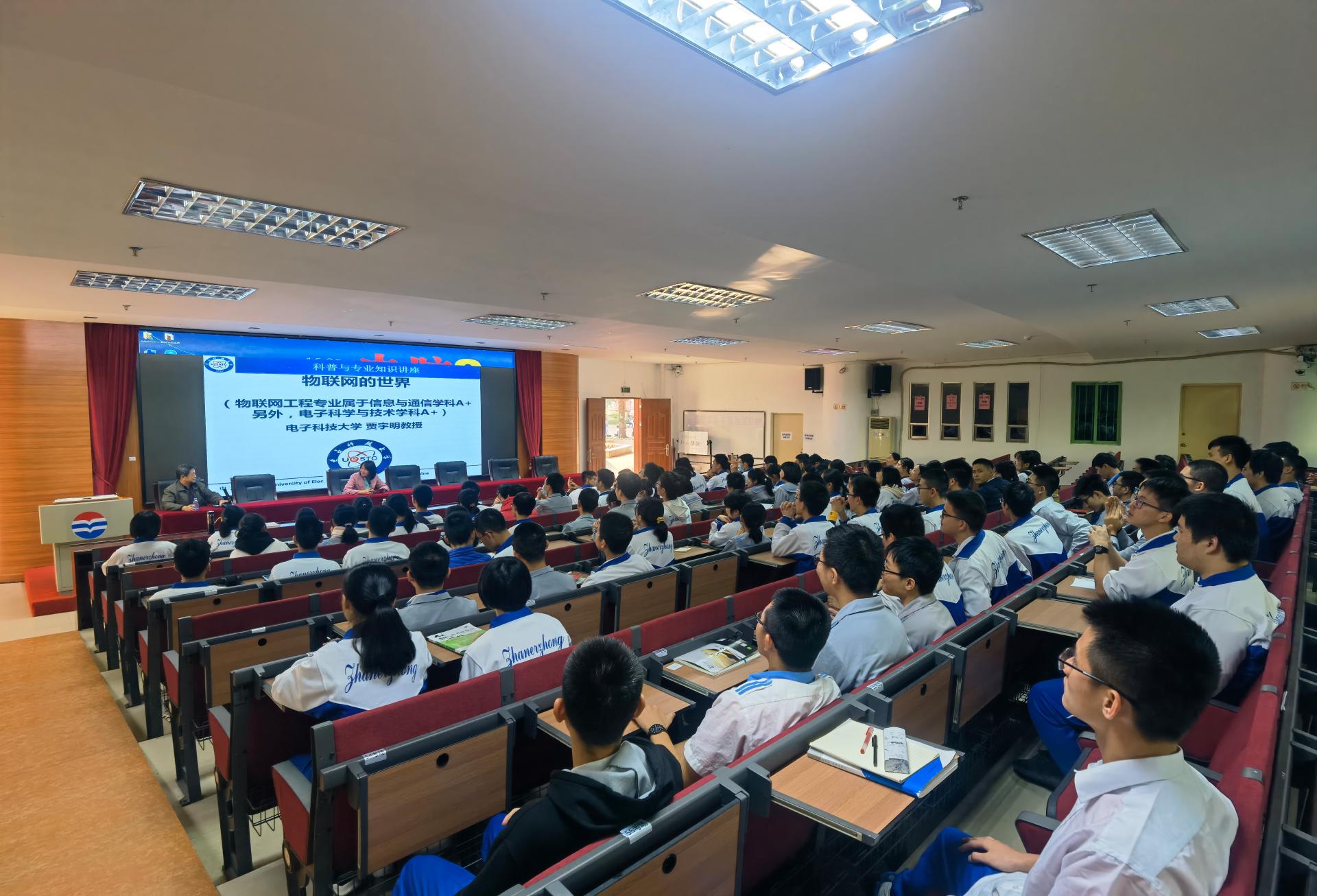 公司广东省招生工作组组长、科普讲座优秀主讲专家贾宇明教授分别在三所中学师生做了题为《物联网的世界》的科普讲座,贾教授深入浅出地分析了物联网发展历程及实际应用,并对未来发展进行了展望。在讲座中,贾宇明教授从国家层面的科技规划出发,指出物联网技术是新一代信息技术的重要内容,并从“什么是物联网”“物联网的特征”“物联网与其他信息技术的关系”“物联网的现实应用”等多个方面进行了细致讲解,并就当前我国物联网技术及相关应用的发展水平和趋势进行了简要概括,同时鼓励在座的同学们努力学习、培养兴趣,争取考入太阳成集团tyc151cc,为我国新一代信息技术的发展做出贡献。科普讲座后,招生工作组现场播放了公司的官方宣传视频,结合公司招生宣传PPT,从人才培养、专业设置和国际交流等方面对公司进行全面介绍,并就现场师生提出的问题进行了细致解答。